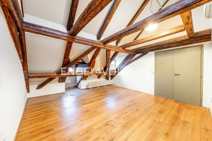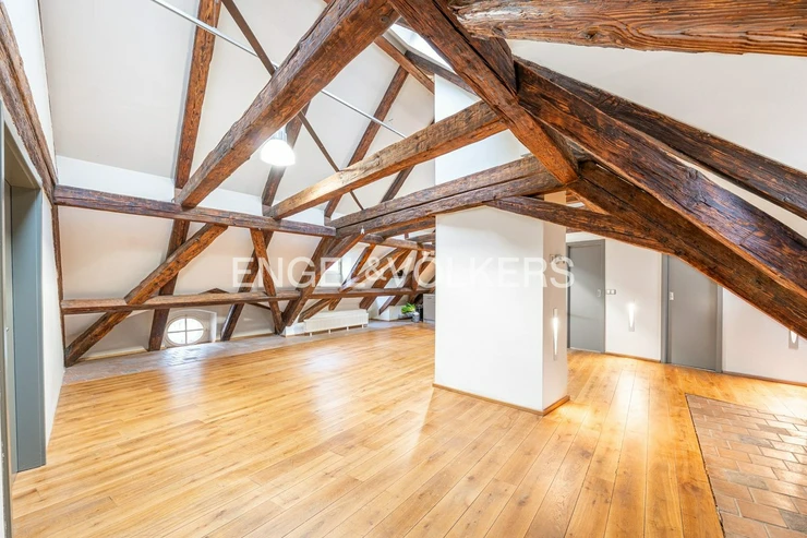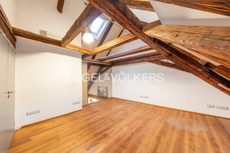 A spacious 3+kk apartment with a total area of 155 sqm, located on the 2nd floor (3rd above-ground floor) of a historical building, is available for rent immediately.