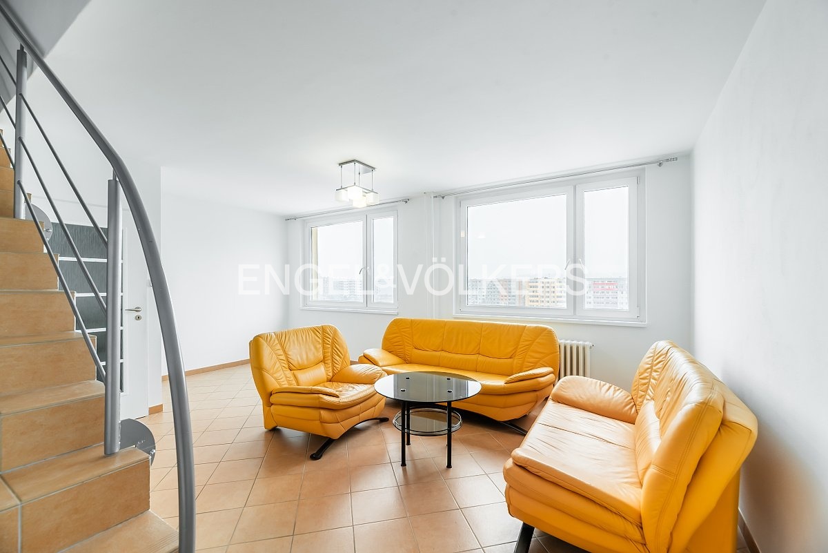 We offer for long-term rent a spacious duplex apartment with a 5+kk layout and a study in a quiet residential area – Stodůlky. The apartment is located in a panel building and its location provides good transport accessibility to the center via the metro line B station – Nové Butovice, which is only a 5-minute walk away. The surroundings offer full civic amenities in the form of restaurants, shops, cafes, and parks. The apartment features a fully equipped kitchen with all appliances, storage spaces, a walk-in closet, a parking space in the garage, and custom-made furniture.