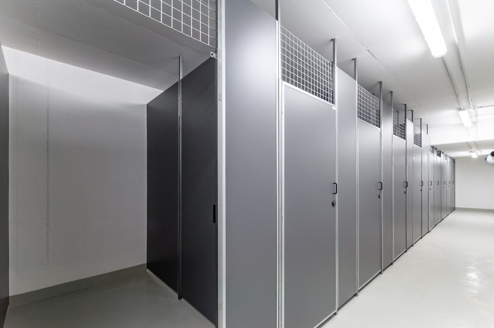 The layout includes a living area with a kitchenette equipped with quality appliances, a separate bedroom, a bathroom with a shower and WC, and an entrance hall with a built-in wardrobe. The apartment also features a balcony and a cellar storage unit. The apartment is bright and airy, offering comfortable urban living.