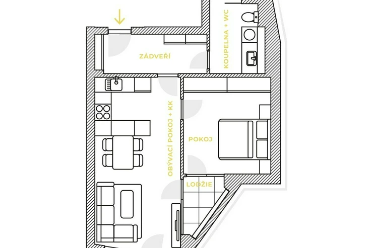 The apartment is situated on the 2 floor and offers a 2+kk layout with a total floor area of 51.46 m². The apartment is available for move-in drom 1. 4. 2026.