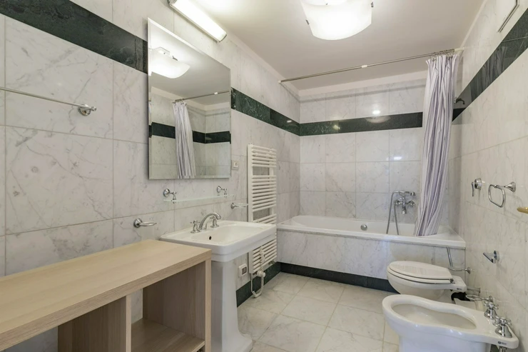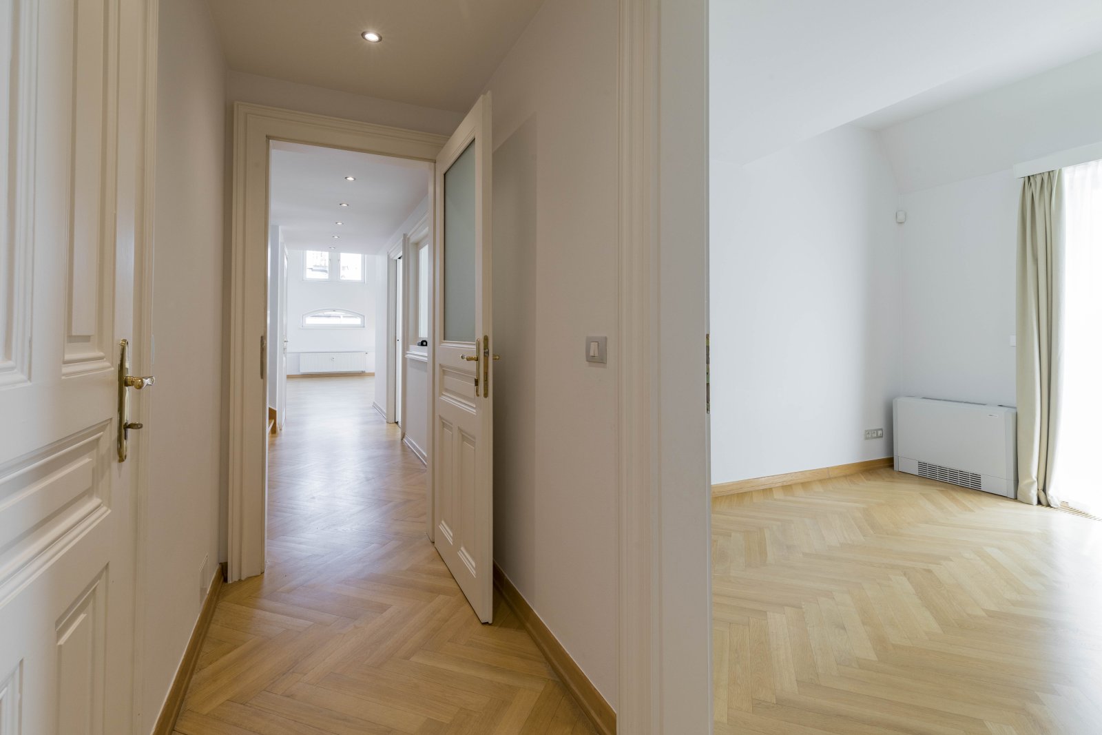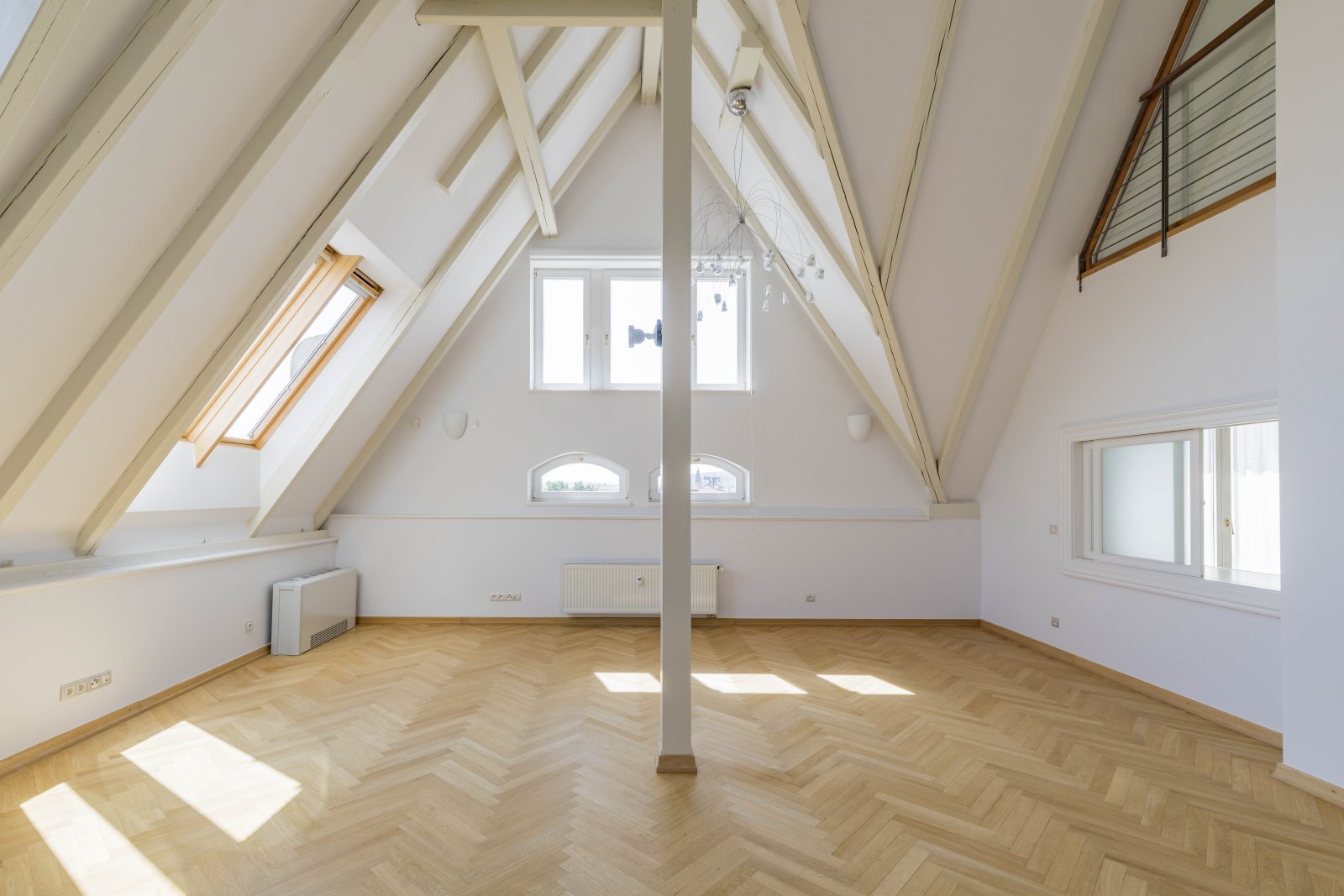 We offer for rent a representative four bedroom duplex apartment with a large terrace on the 5th and 6th floor of a renovated neo-renaissance apartment building with an elevator in a sought-after location of Prague 5 on the border of Malá Strana and Smíchov. The apartment has a total area of 286 sqm and offers on the lower lever an entrance hall, a spacious living room, a fully equipped kitchen with all appliances (ceramic hob, oven, refrigerator, dishwasher and microwave), 1 bedroom with a private bathroom with a bathtub, shower, toilet and bidet, a dressing room and access to the balcony. Two more bedrooms, both with access to the balcony, 1 bathroom with bathtub, toilet and bidet, a small dressing room and a storage room. On the upper level there is an open room with the possibility of using it as a guest bedroom or a playroom for children, 1 bathroom with shower, toilet and bidet, laundry room with washing machine and dryer and a 35 sqm terrace with a pergola, a seating area with a breathtaking view of Petřín Hill and Prague Castle. The apartment is partially furnished and its equipment includes a dining table with chairs, a bed and a built-in wardrobe in the bedroom, a fitted wardrobe, curtains, shelves in the bathroom, air conditioning, alarm, videophone, security door, wooden parquet floors, marble floors in the bathrooms, gas heating. There is outdoor furniture and a pergola on the terrace, and an irrigation system has been installed for the plants on the terrace. There is also a basement storage for use.The house has a daily reception desk and the possibility of using the maintanance services. Perfect location opposite Petřín Park, within walking distance of Prague Castle, Charles Bridge, Lesser Town Square. The house is surrounded by all civic amenities: restaurants, cafes, bistros, shops, medical facilities. Just a few steps from the French Lyceum, tram station, Anděl metro station and Nový Smíchov shopping center. By car, close access to the Prague Ring Road and the highway network. Parking space in the garage on the stacker suitable for low cars with a height of up to 150 cm directly in the house for an extra fee of CZK 3,900 + VAT/month. For larger cars, it is possible to use parking in Drtinova Street for an extra fee. The tenant of the apartment has the opportunity to become a member of the Elliptico wellness club in the Ellipsis residence in Holečková Street for a fee.