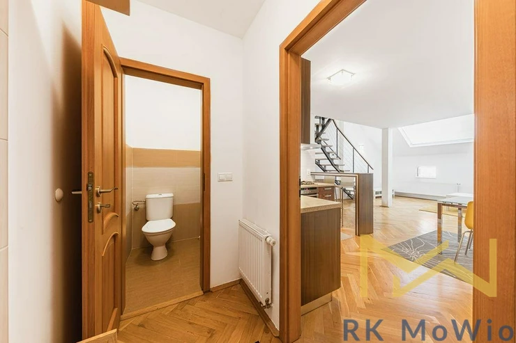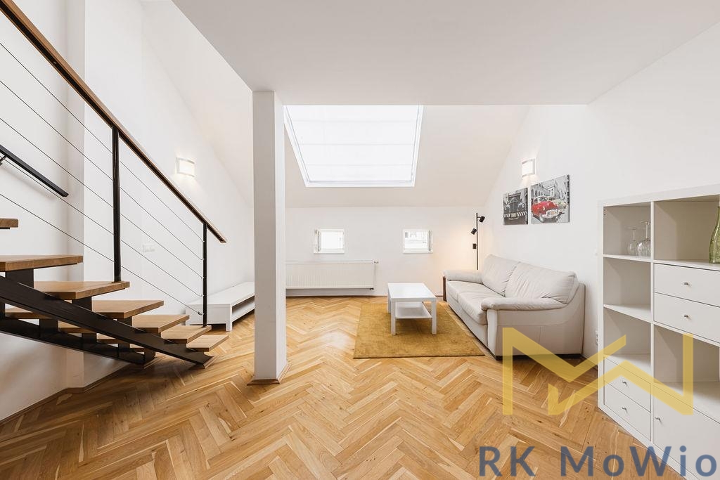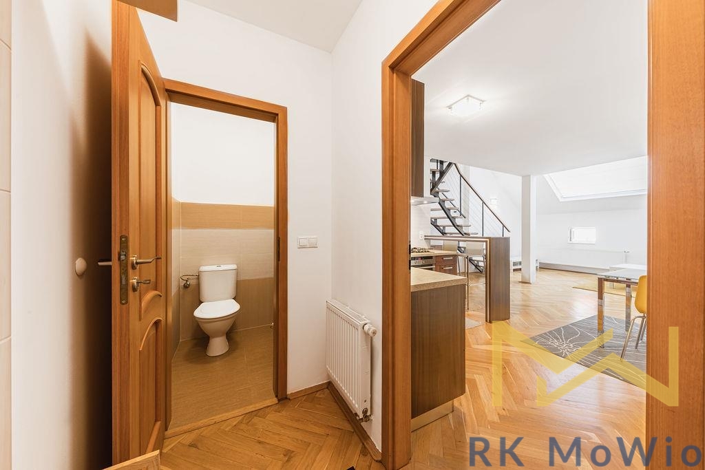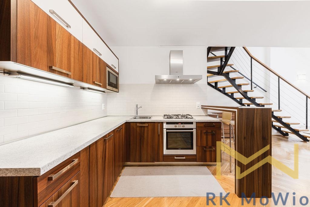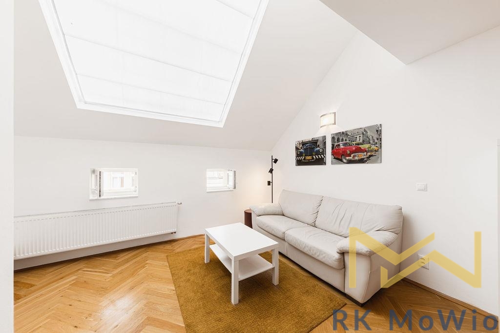 We offer for rent a renovated, furnished maisonette 1-bedroom apartment with a total area of 74.4 sqm and a terrace of 12 sqm, situated on the 5th and 6th floors (6th and 7th above-ground levels) of a building with an elevator, in a picturesque and quiet residential area on Záhřebská Street, Prague 2 – Vinohrady.