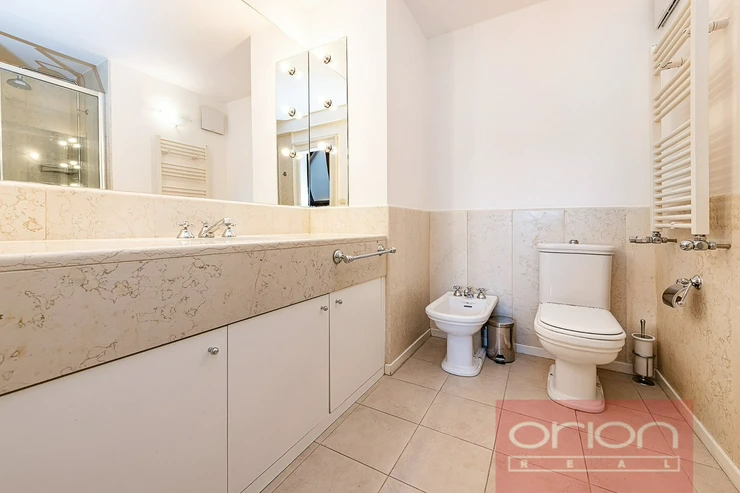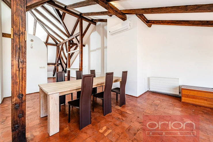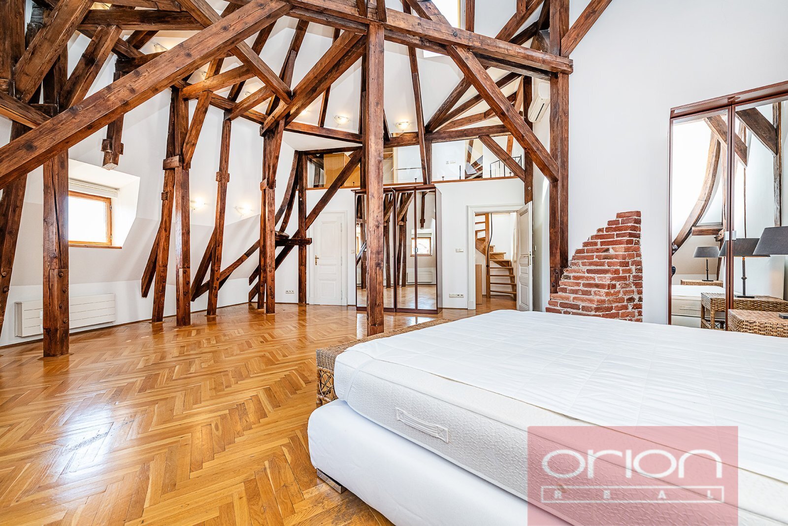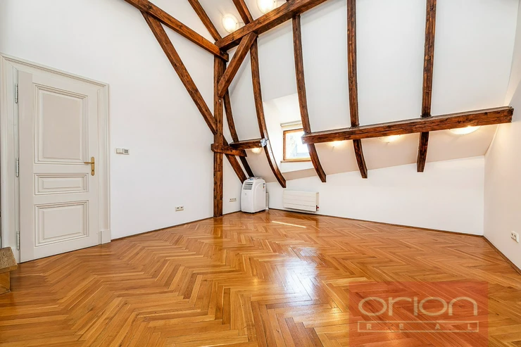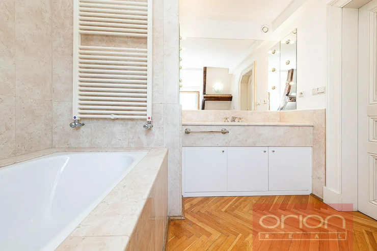 We offer for rent a luxury three bedroom - three bathroom apartment (282 sqm) with 23 sqm terrace on the 5th floor of an Art Nouveau building with an elevator, located in a popular residential area of Prague 2 - Vinohrady, just a few meters from Náměstí Míru. The partially furnished, spacious apartment offers an entrance hall, spacious living room with access to a large terrace, dinning room, fully equipped kitchen, 3 bedrooms, 3 bathrooms (bath, toilet, bidet, shower), guest toilet and utility room with washing machine and dryer and 2 open galleries. The apartment is equipped with wooden parquet and marble tiles in the bathrooms, internet, satellite. The location has excellent transport accessibility, civic amenities, there are many restaurants, cafes, bistros, shops and other services in the vicinity. A few steps from the house are tram, bus and metro stations, Wenceslas Square or the Riegrovy sady park are just a few minutes walk. Rent 4.000 EUR per month. Possibility to rent 1 parking space in the underground garage for extra fee.