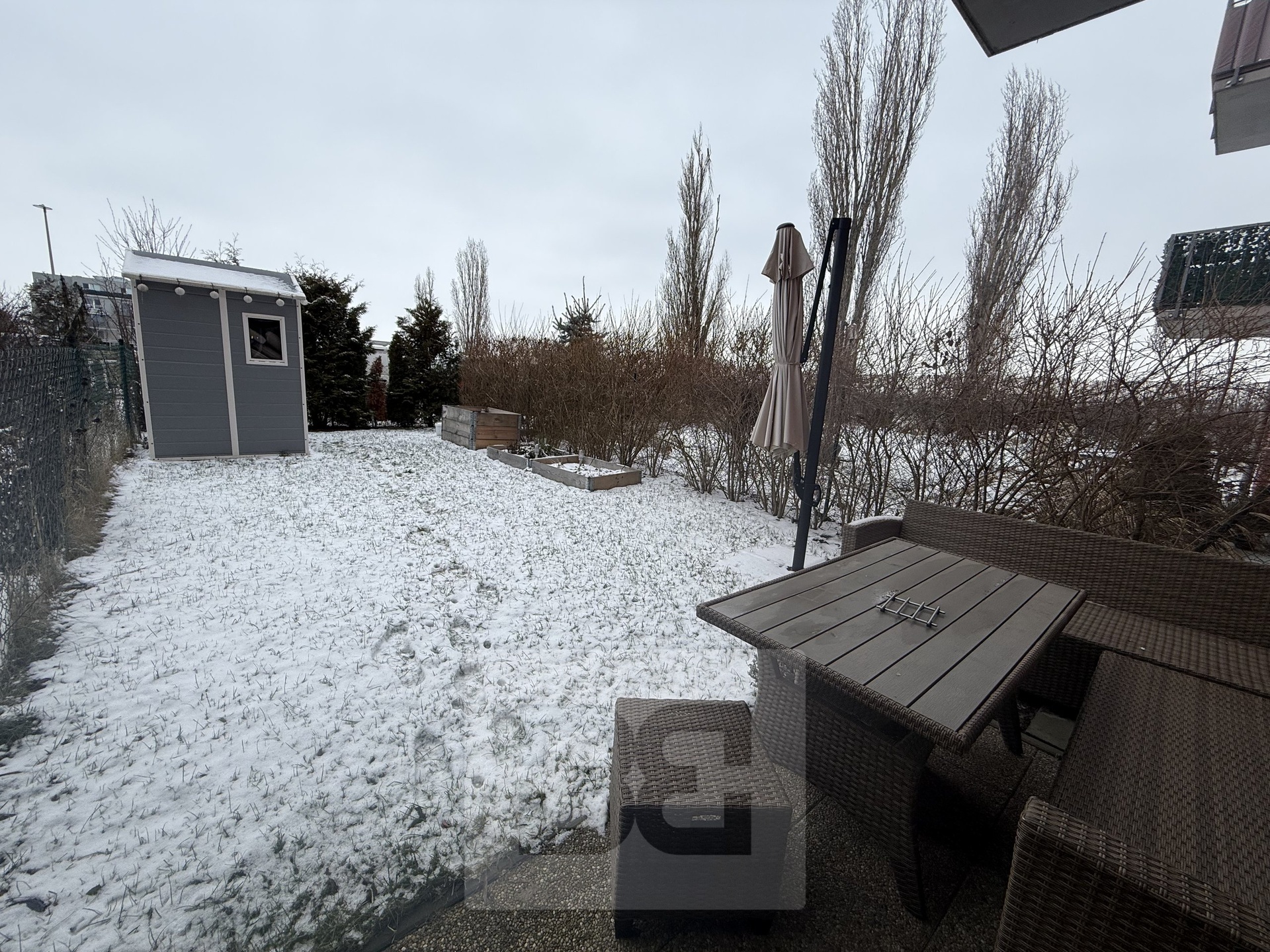 • Living room with access to the garden is furnished and features a large built-in wardrobe
