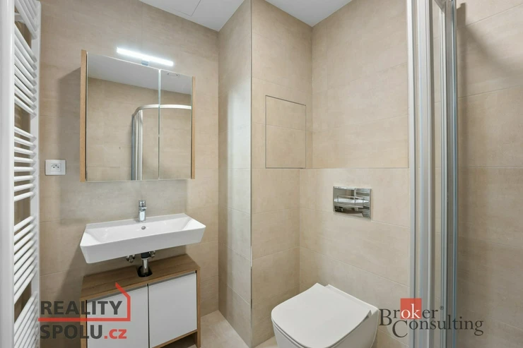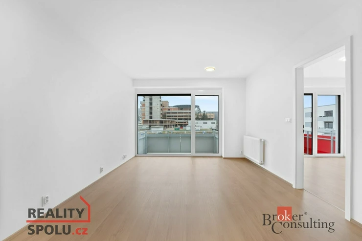 Nabízíme k pronájmu světlý byt 2+kk o užitné ploše 56 m² ve 4. patře novostavby s výtahem. Byt disponuje prostorným obývacím pokojem s kuchyňským koutem vybaveným moderními spotřebiči, ložnicí, koupelnou se sprchovým koutem a WC. Balkón s příjemným výhledem, vlastní parkovací stání a sklepní kóje jsou součástí nabídky. Okna jsou opatřena předokenními žaluziemi.