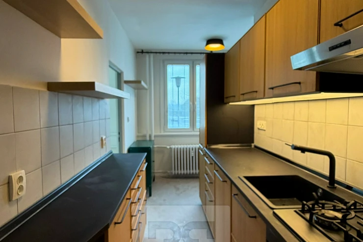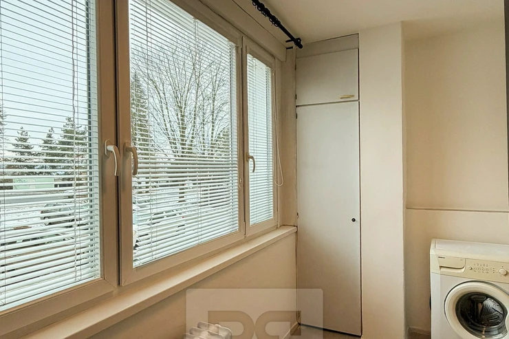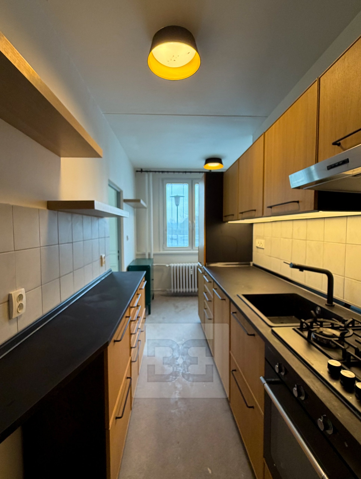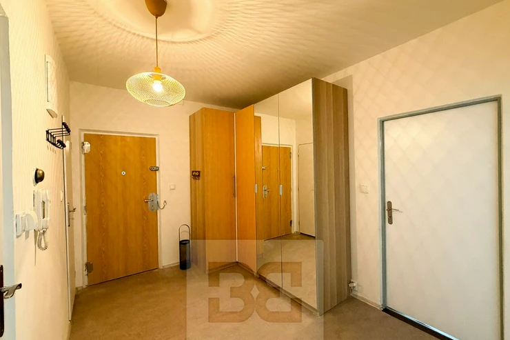 Byt je k pronájmu bez nabytku, zato včetně veškerého příslušenství - od balkonu přes sklep, pračku, kombinovanou troubu, vestavěné skříně v předsíni až po sklepní kóji.