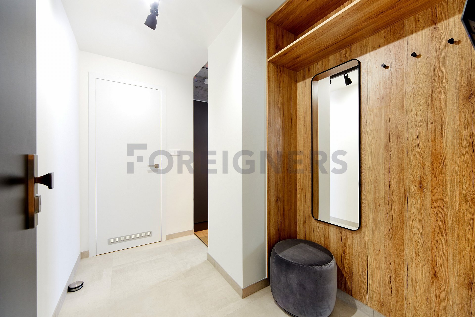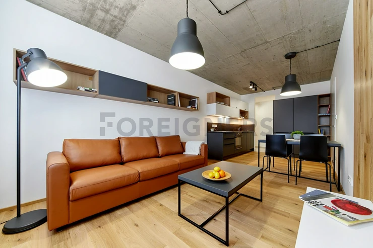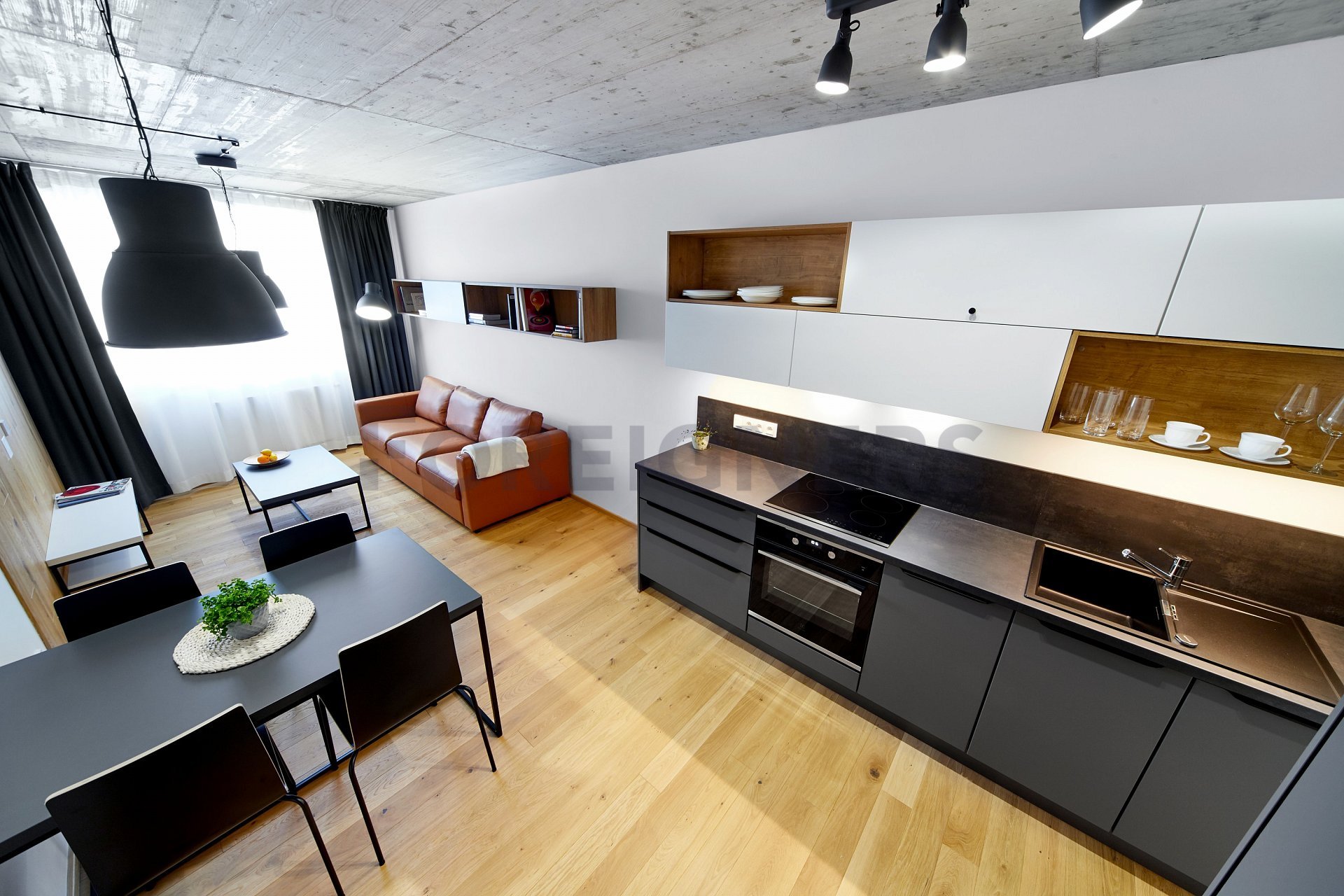 Luxurious 1-bedroom apartment of 50 m2 in modern industrial style on Cejl in Brno. The apartment is fully furnished and soundproof, and also contains an air conditioner and recuperator, which will guarantee that you will breathe fresh air. The building has a high degree of security – there are 18 security cameras in the entire object, entrance gate, and a chip entryway. You can also use underground parking. If you ever need to deal with any issues, there’s a reception desk with a property manager at your service on the first floor.
