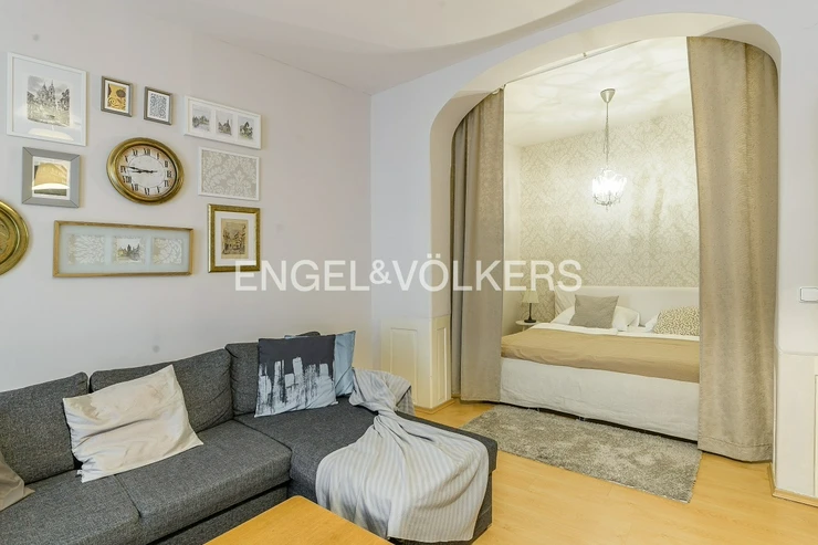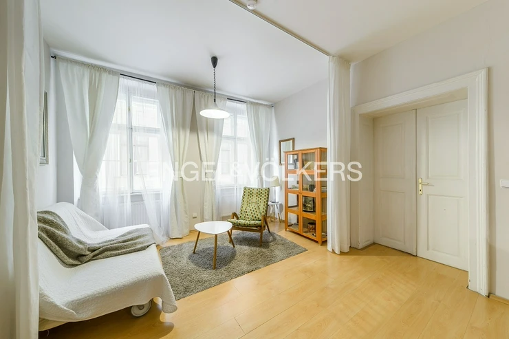 We are offering a fully furnished apartment for rent from March 15, 2026, located on the first floor of a historic building without an elevator in the very centre of Prague, near Náměstí Republiky.