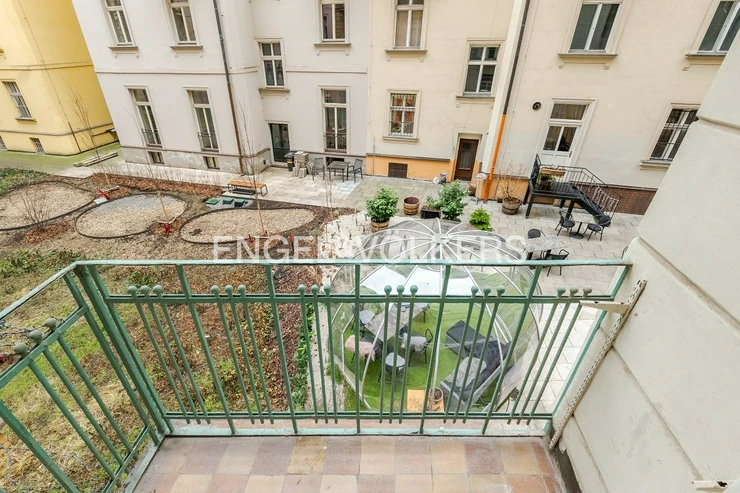 A major advantage is the exceptional location - just a few steps from Mánes, with tram stops in the immediate vicinity of the building and excellent access to public transport. The Karlovo Náměstí metro station (line B) is within walking distance. The location also offers complete civic amenities, including shops, restaurants, cafes, pharmacies, and other services.