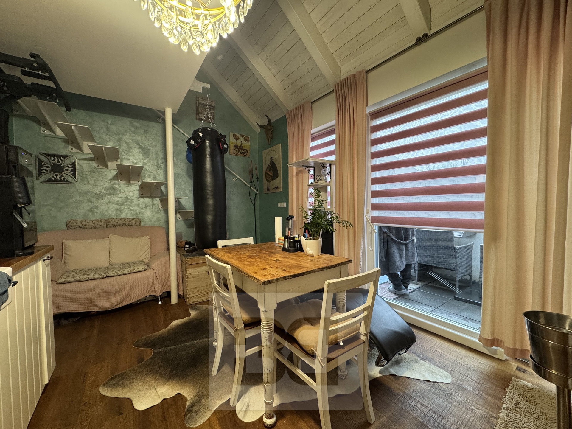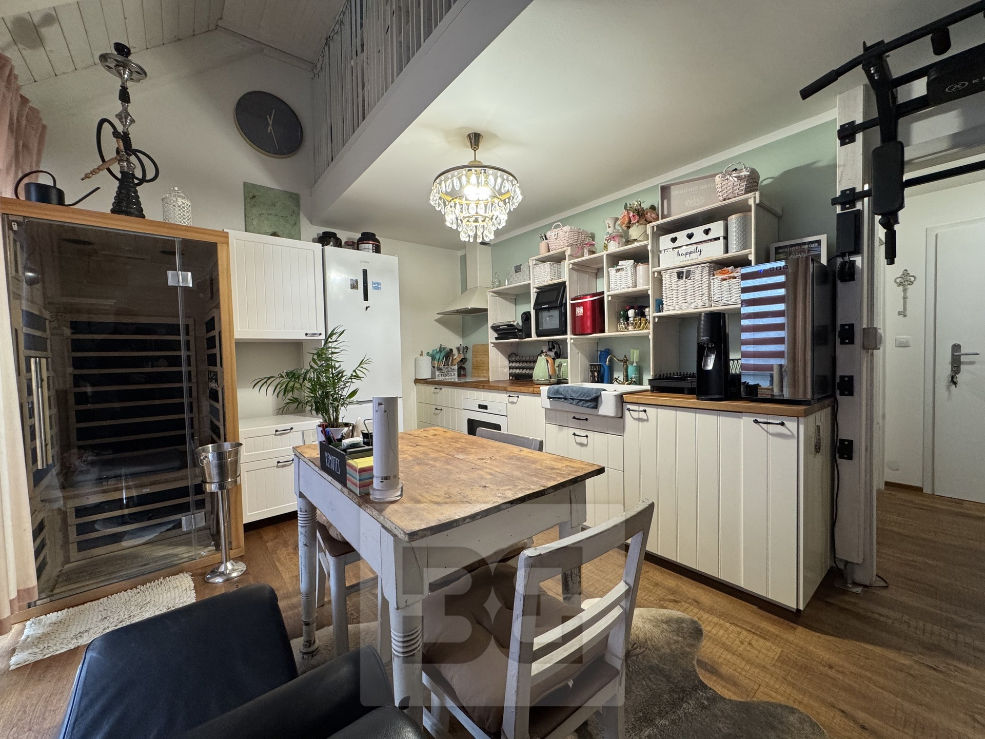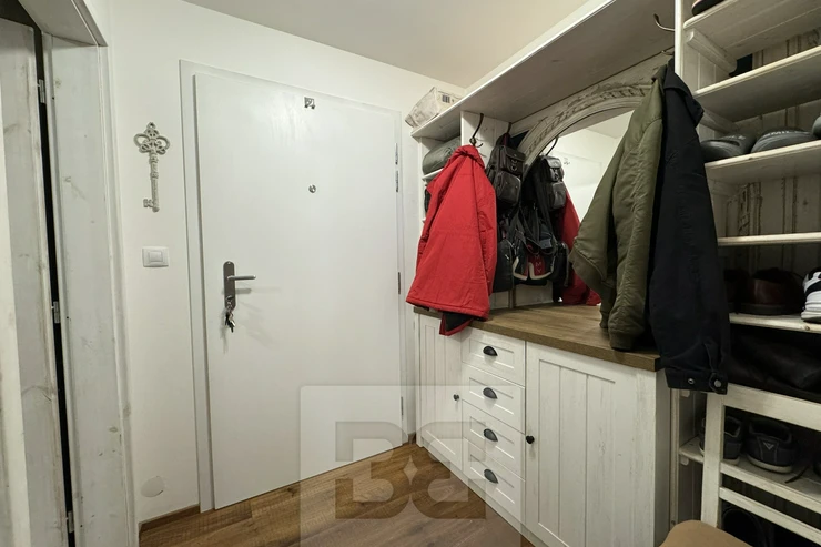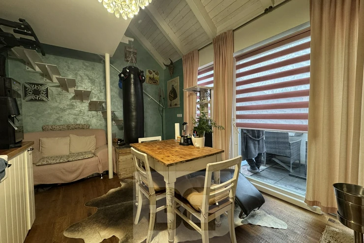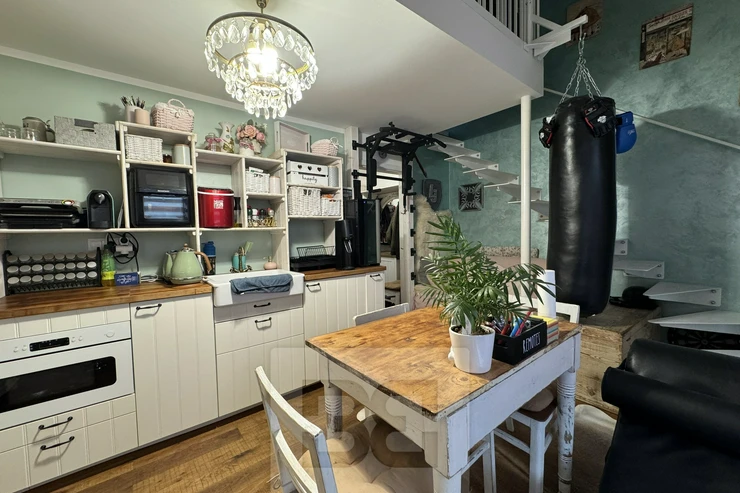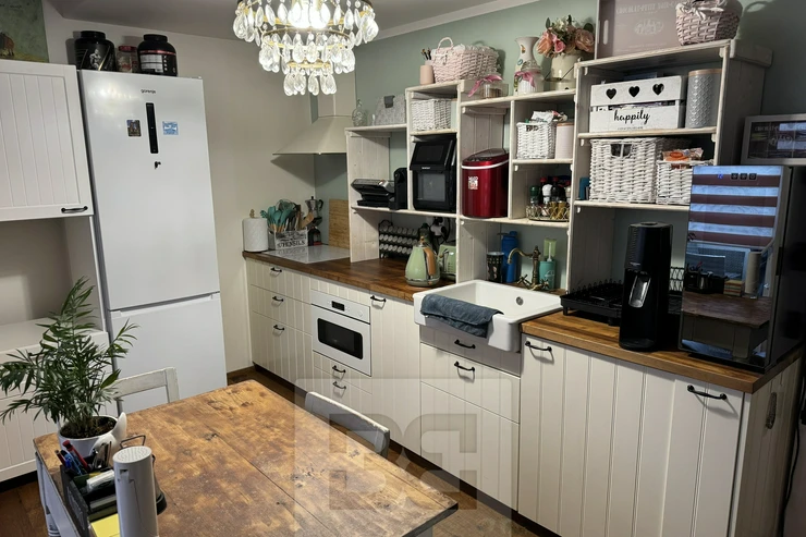 Byt je oproti fotografiím vybaven kuchyňskou linkou se spotřebiči bez horních polic, stolem se židlemi, postelí a komodami. zbývající nábytek je podnájemník ochoten prodat. Veškeré dřevěné doplňky, police, sauna obložení terasy apod. je stávajícího nájemníka.