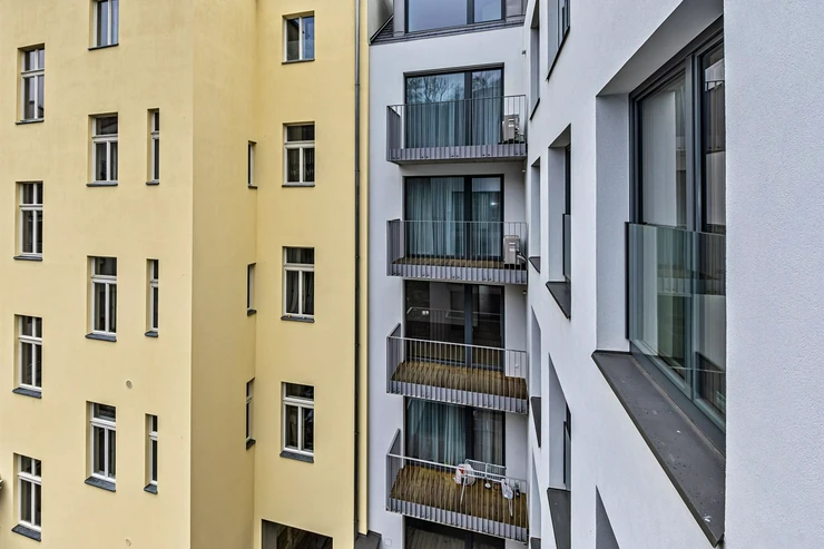The building is located in a quiet part of Žižkov, below Vítkov hill, with direct access to a bike path and pedestrian trail leading through Vítkov to Karlín. Vítkov Park is ideal for running, walking, cycling, and picnics. It offers beautiful views of Prague. The Vítkov tunnel "Neboj" is part of the main cycle route A25, which connects Žižkov with Karlín and the city center. Nearby is also the Pražačka Sports Complex with a swimming pool, playgrounds, and a fitness center.