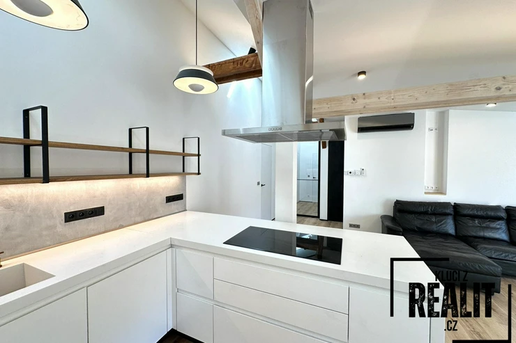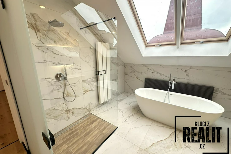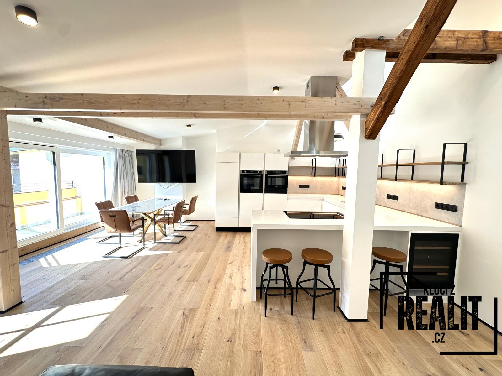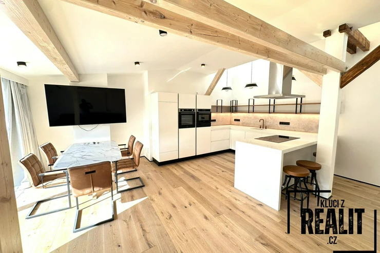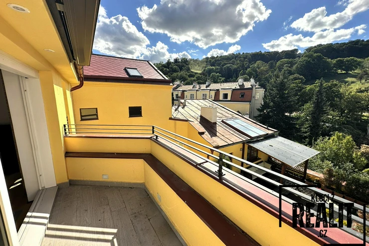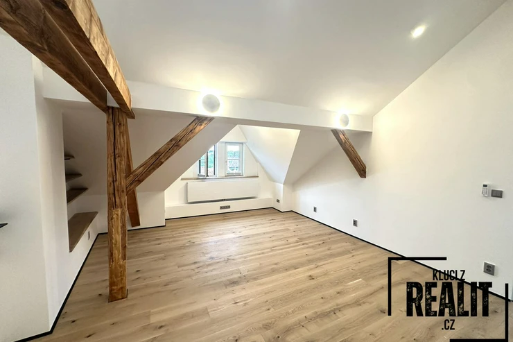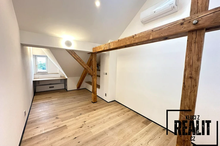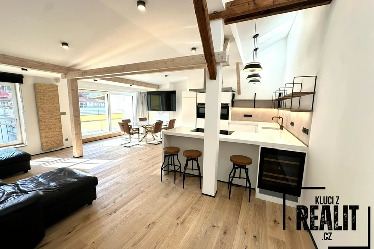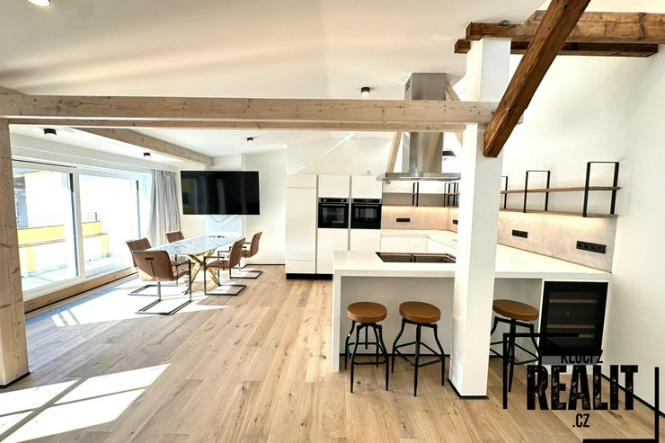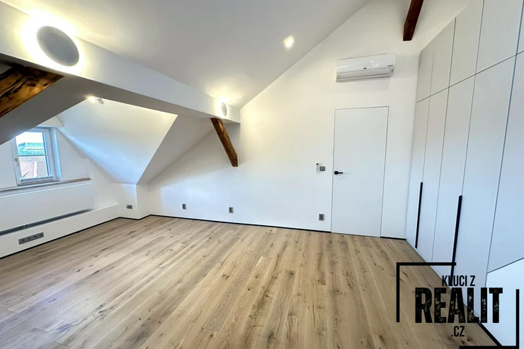 For long-term rent we offer a fully air-conditioned attic apartment with a terrace and above-standard equipment with a 4+kk layout and an area of 136 m2, situated on the 4th floor of a historic house with an elevator in the prestigious location of Malá Strana, on Újezd Street.