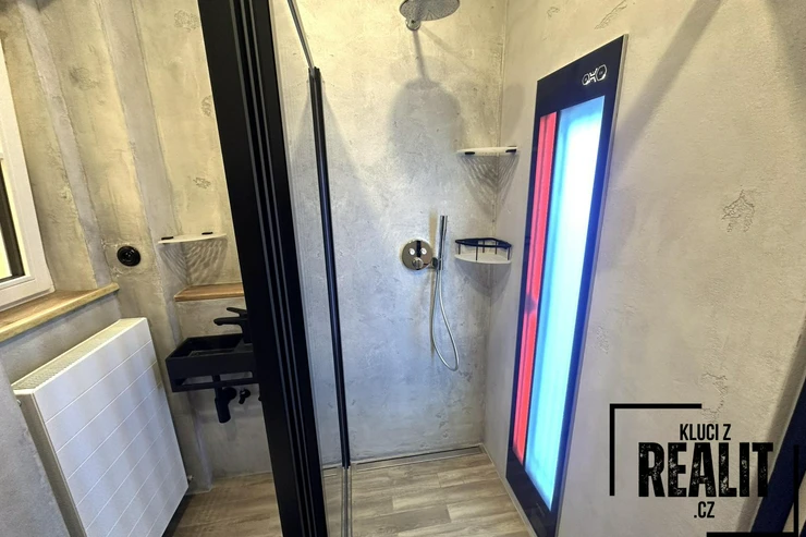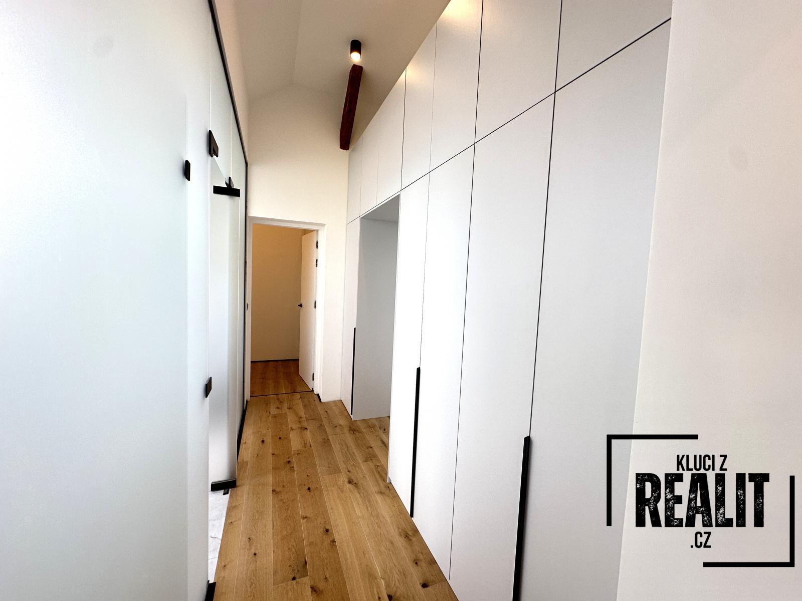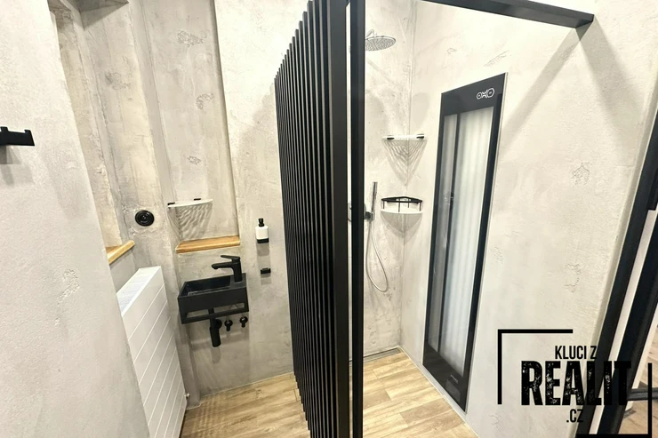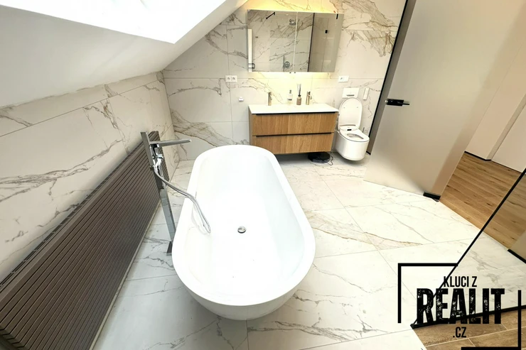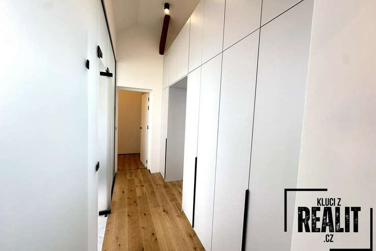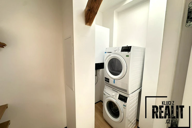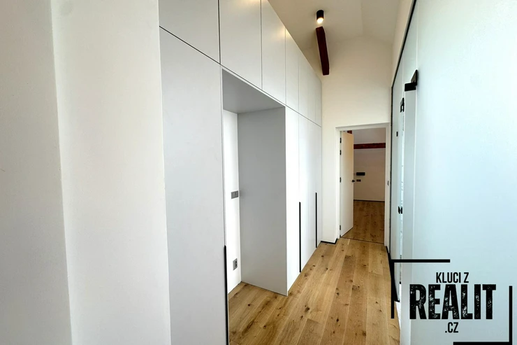 From the entrance hall there is access to the technical room, the children and #39;s room, a bathroom with a shower with infrared light and a bidet toilet for guests and a living room with a spacious and equipped kitchen and access to the terrace, which faces a quiet courtyard with a view of Petřín Hill. The kitchen is equipped with a dishwasher, oven, induction cooker, fridge, freezer, microwave, wine cellar and plate warmer.
