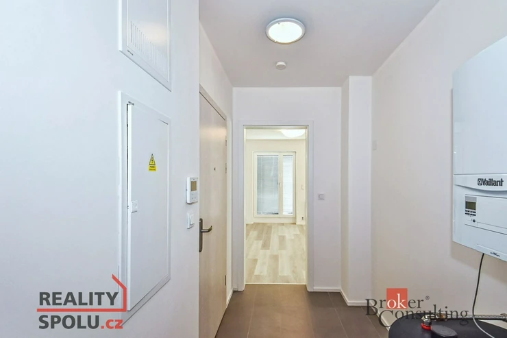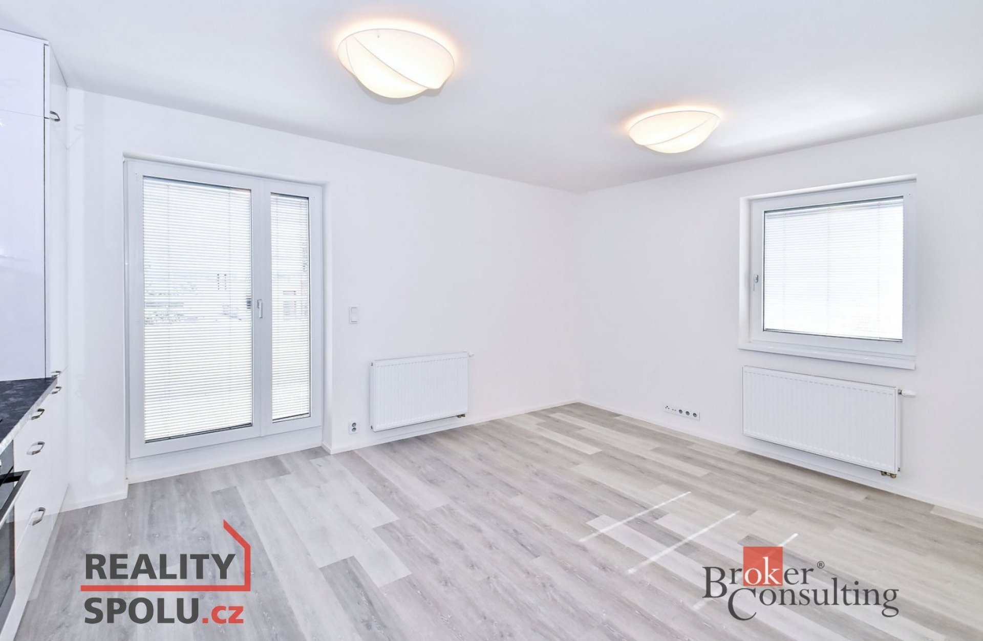 Dispozice: předsíň (6,9 m2), koupelna (3,9 m2), obývací pokoj (29 m2) s kuchyňským koutem a prostorem na spaní ). Kuchyňská linka je vybavena kompletně vestavěnými spotřebiči (lednice s mrazákem, sklokeramická varná deska, el. trouba, myčka, digestoř, mikrovlnná trouba). V bytě je vlastní plynový kotel k vytápění a ohřev teplé vody, což je velkou výhodou, jelikož můžete ovlivnit vlastní spotřebu. Dále v bytě je klimatizační jednotka a v předsíni šatní skříň, na podlaze je vinyl a v koupelně dlažba, okna jsou se žaluziemi a trojskla. Koupelna je světlá s oknem, toaletou, vanou se zástěnou a umyvadlem. Prostor na pračku je v předsíni. K bytu náleží sklep v přízemí domu a parkovací místo v samostatné garáži, již zahrnuto v ceně nájmu.