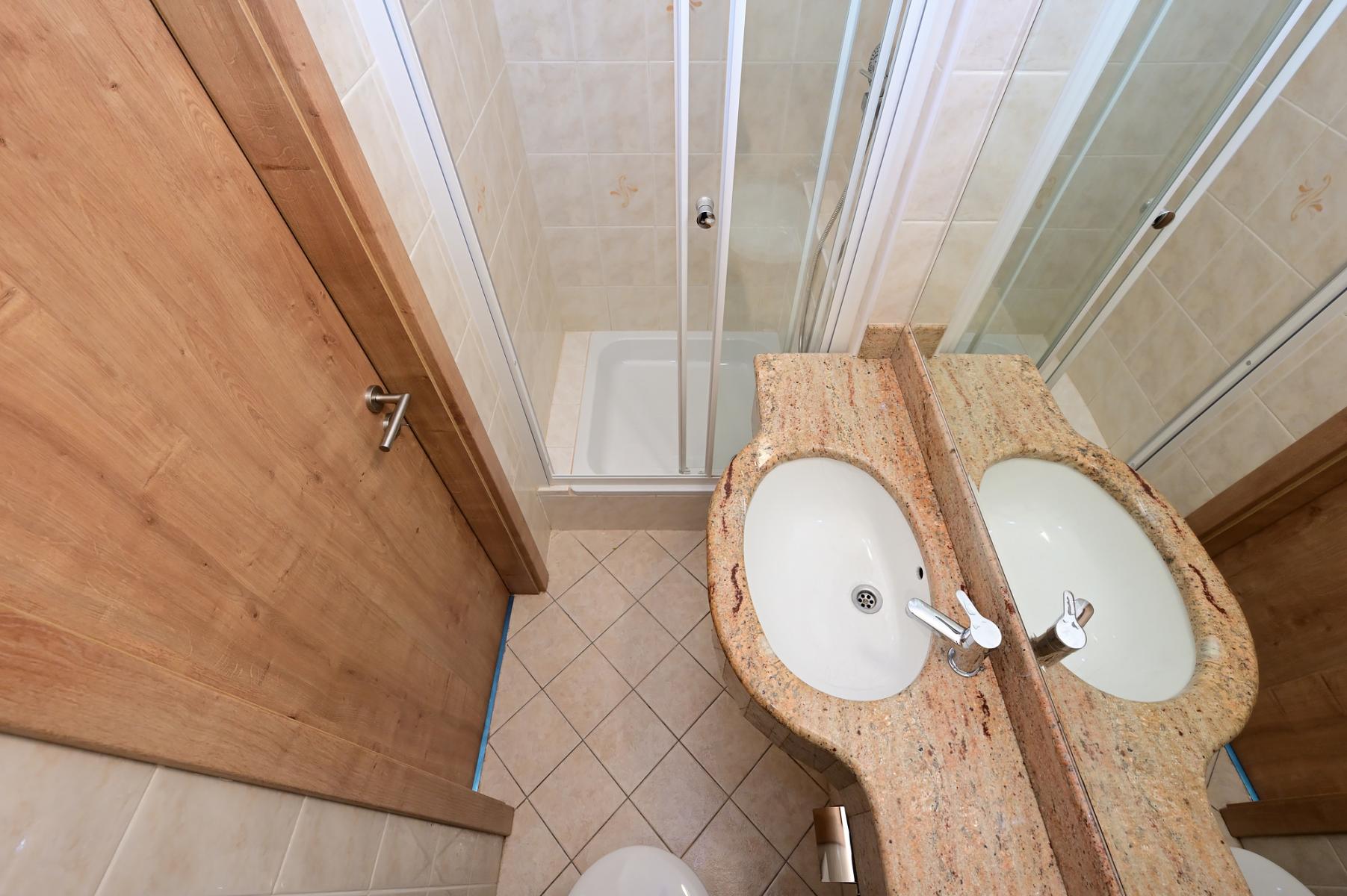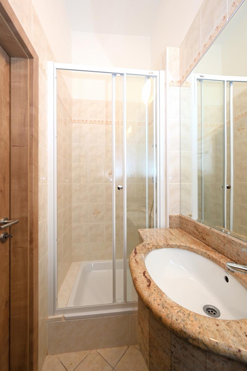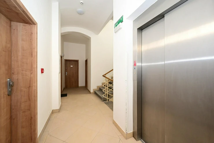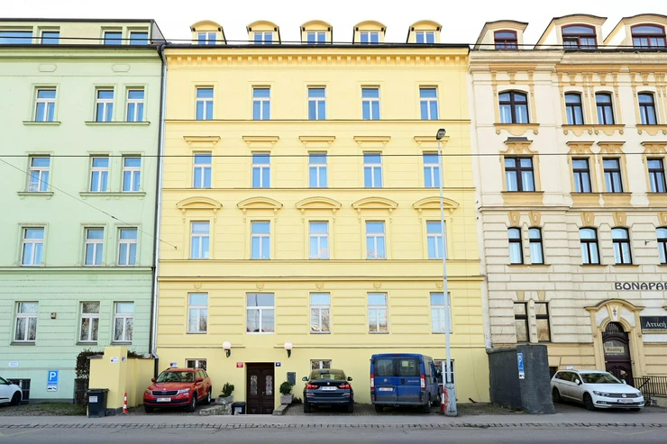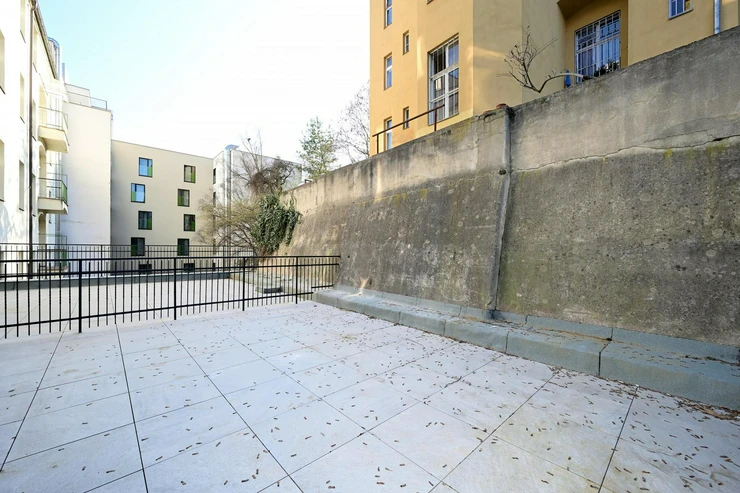 The apartment is oriented to the west, so it is very quiet. The room was a new reconstruction, the bathroom with a marble sink was original. Thanks to the excellent accessibility to the metro and tram junction, it is ideal for urban living. At the same time, the large terrace will satisfy almost all demands for free time.
