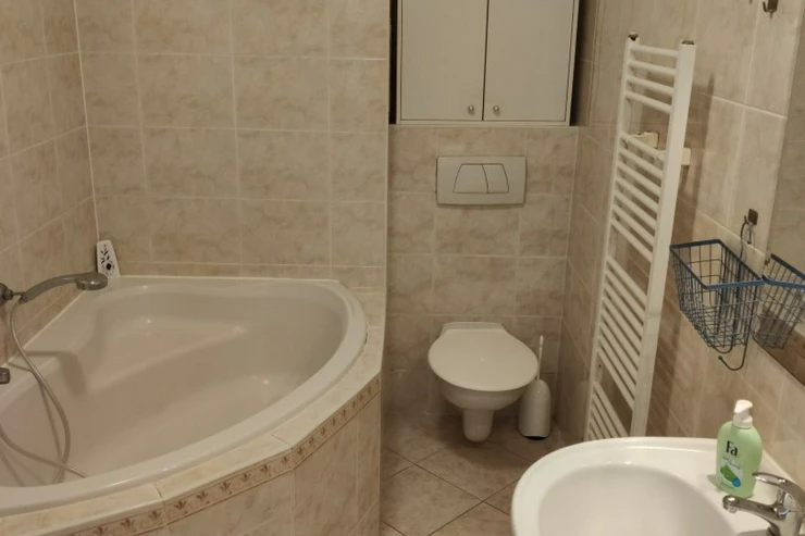 Byt je částečně vybaven pračka, postel včetně matrace, kuchyňská linka s elektrickou troubou, varnou deskou, lednicí a mikrovlnou troubou.