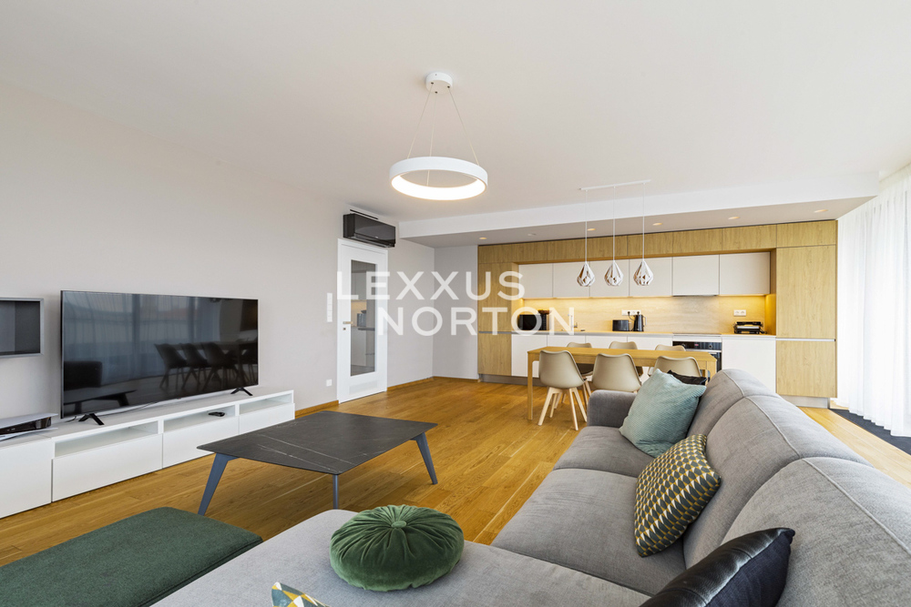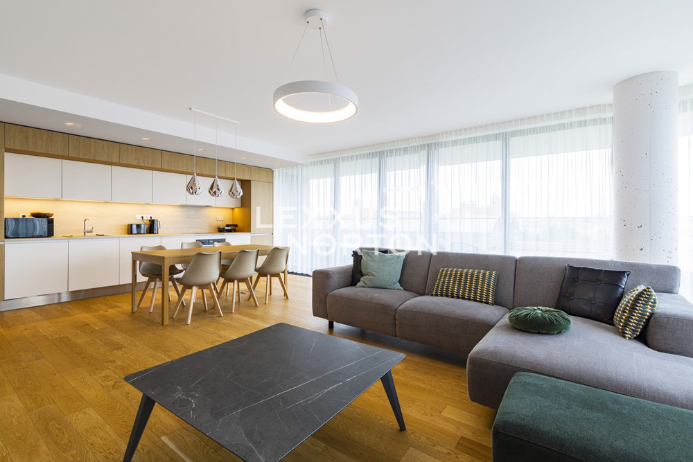 Highly desirable location of Vinohrady offers a luxury, unfurnished two-bedroom apartment for rent of 98 sqm with balcony (15 sqm), which is part of a newly built residential project with elevator, security and reception Residence Churchill. Complete civic amenities, excellent transport infrastructure and numerous parks in the vicinity.The apartment offers an entrance hall, living room with kitchenette and direct access to a balcony with panoramic views, two bedrooms, and two bathrooms. The apartment also includes two garage parking spaces and a cellar.This representatively furnished apartment with a modern interior is equipped with air conditioning and built-in wardrobes. The kitchenette is fully equipped with a ceramic hob, oven, refrigerator with freezer, and dishwasher. The apartment offers two designer bathrooms – one with a bathtub and toilet, the other with a shower, toilet, washing machine, and dryer.Vinohrady is one of the most desirable Prague locations. They have a great location where everything you need can be found within 10 minutes walk. The area has excellent transport accessibility - 2 metro stations - Namesti Miru and I.P. Pavlova, several tram lines and buses. Wenceslas Square can be reached by public transport in just 5 minutes. The road connection is also good. The motorway ring road can be reached in just 12 minutes by car and the Vaclav Havel Airport in 27 minutes. There are complete civic amenities in the vicinity of the house - pharmacy, clinic, post office, supermarkets, offices, banks, local shops, restaurants and bars. Nearby there are kindergartens, primary and secondary schools, a college and playgrounds. For leisure activities you can use Havlickuv and Rieger's orchards with beautiful views of Prague.The inquiring client agrees to pay a commission of 1 month's rent plus VAT. If you are unable to view the property in person, we also offer you a video tour from the comfort of your home in real time via Skype, Messenger, WhatsApp and other communication platforms.