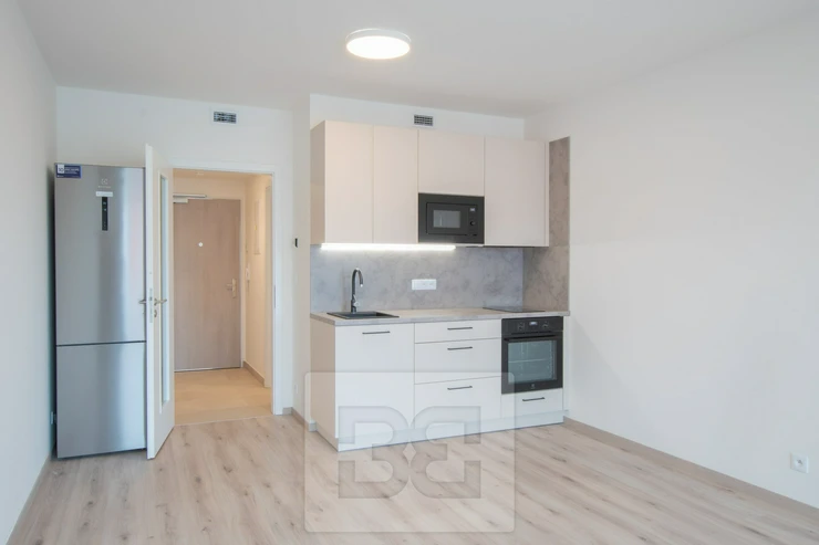 We offer for rent a beautiful, modern studio apartment (1+kk) with a floor area of 32 m², located on the 3rd floor of a newly built residential building near the Hloubětín metro station.