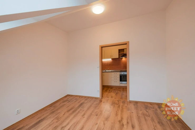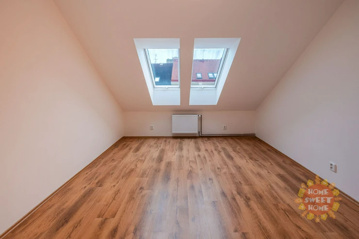 We offer for rent a very nice unfurnished attic apartment 2+kk (47m2), located on the fifth floor of a brick building with an elevator on Žerotínova Street, Prague 3, Žižkov. The kitchen has a ceramic hob and electric oven. The bathroom has a shower and toilet. Internet connection available (via ELDATA). Good civic amenities - restaurants, shops, cafes, supermarket, and more. Transport accessibility - approx. 5 minutes to the Černínova bus station or the Biskupcova tram station. The building is located a few steps from Vrch Vítkov Park.
