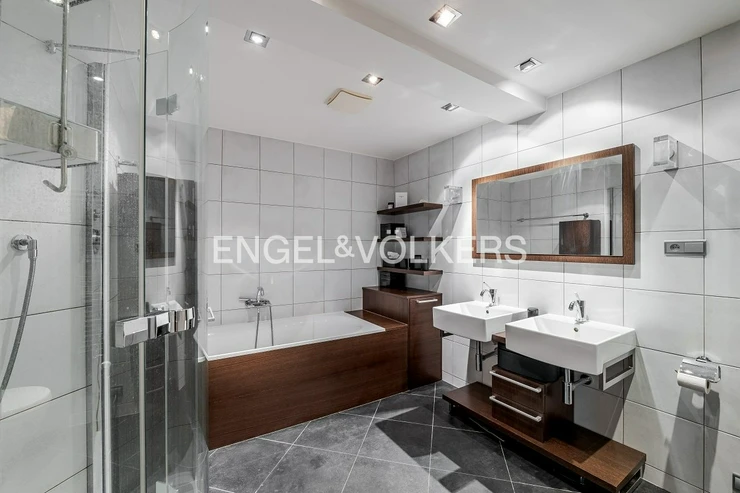 The apartment is available fully furnished, but can also be unfurnished at the tenant’s request. The equipment includes a modern kitchen with appliances (fridge with freezer, hob, oven, extractor hood, wine cooler), built-in wardrobes, washing machine, air conditioning, smart home system, wooden floors, and underfloor heating in the bathrooms and toilets.