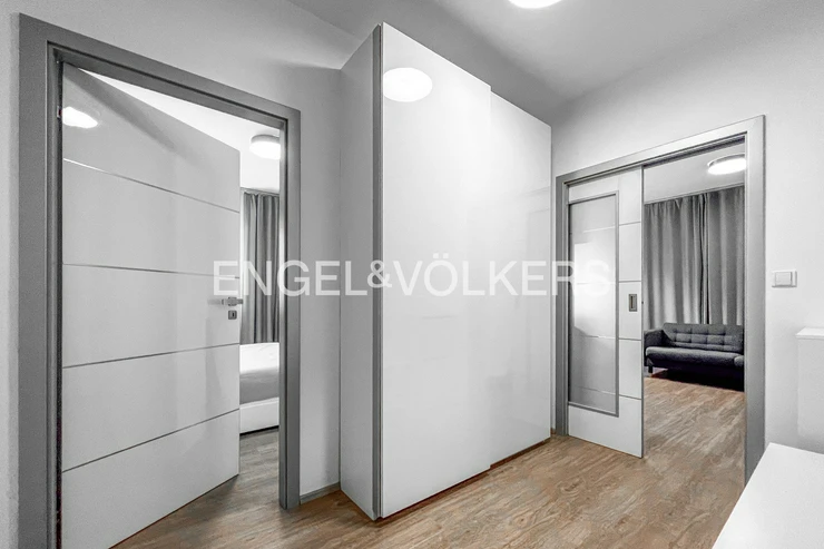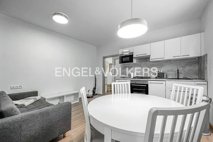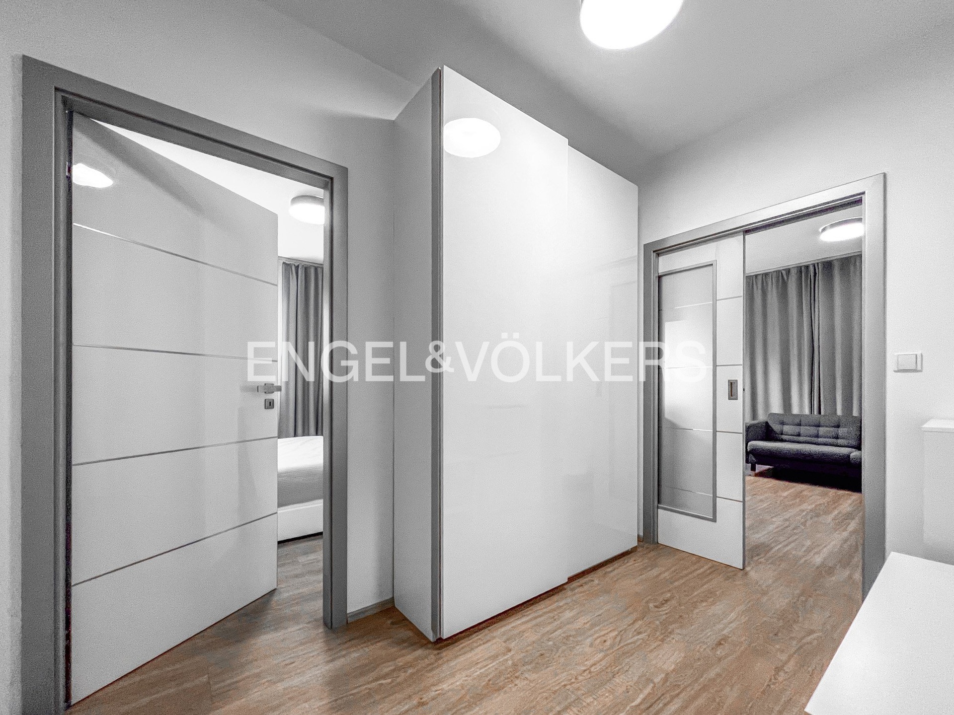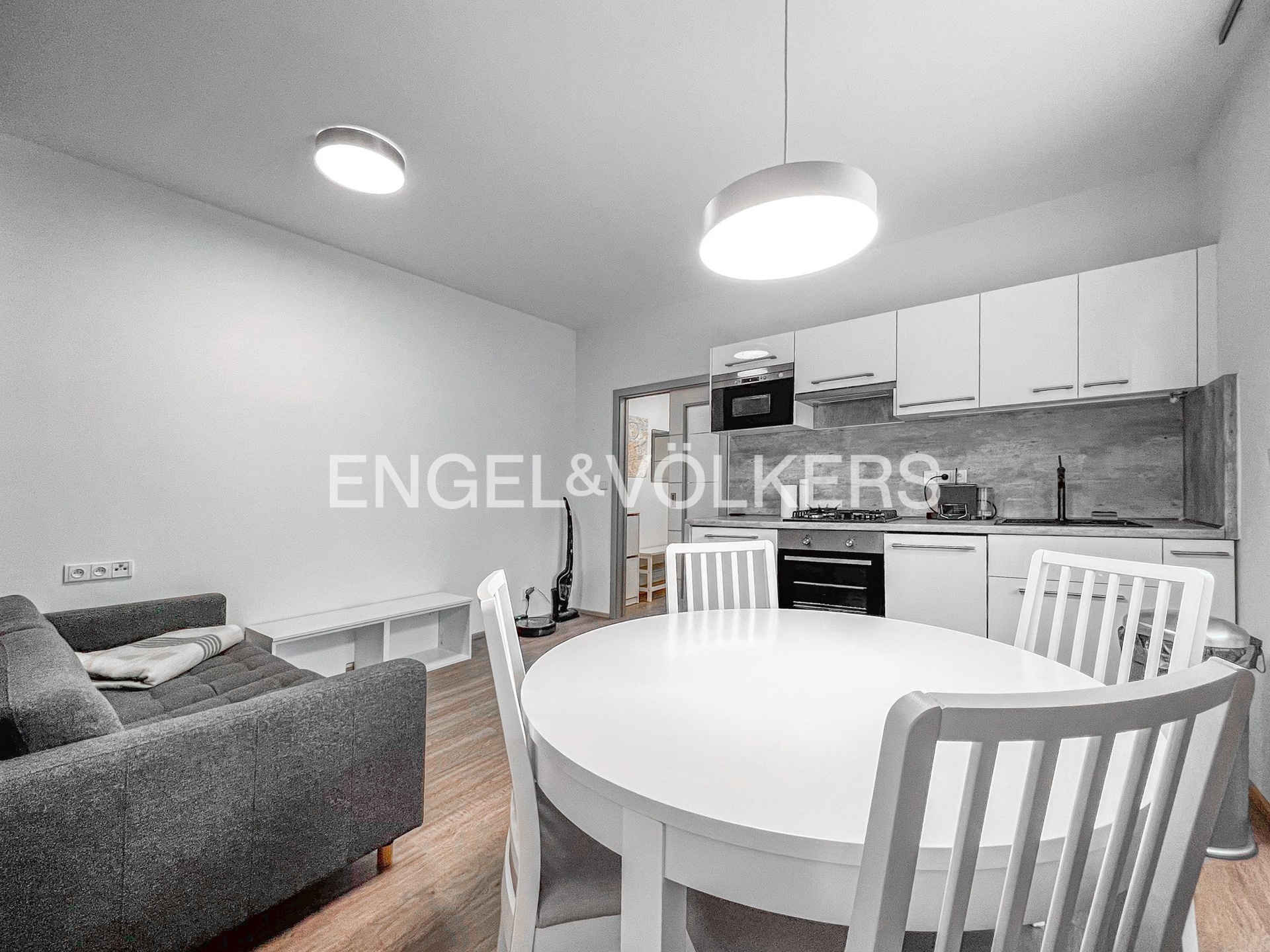 The apartment is located in an attractive part of Smíchov, just a few minutes from the Klamovka tram stop, which is only two stops away from the Anděl metro station and the Nový Smíchov center. In the vicinity, you will find restaurants, cafes, and shops; nearby are the Kinský Garden and Klamovka Park, ideal for walks and relaxation.