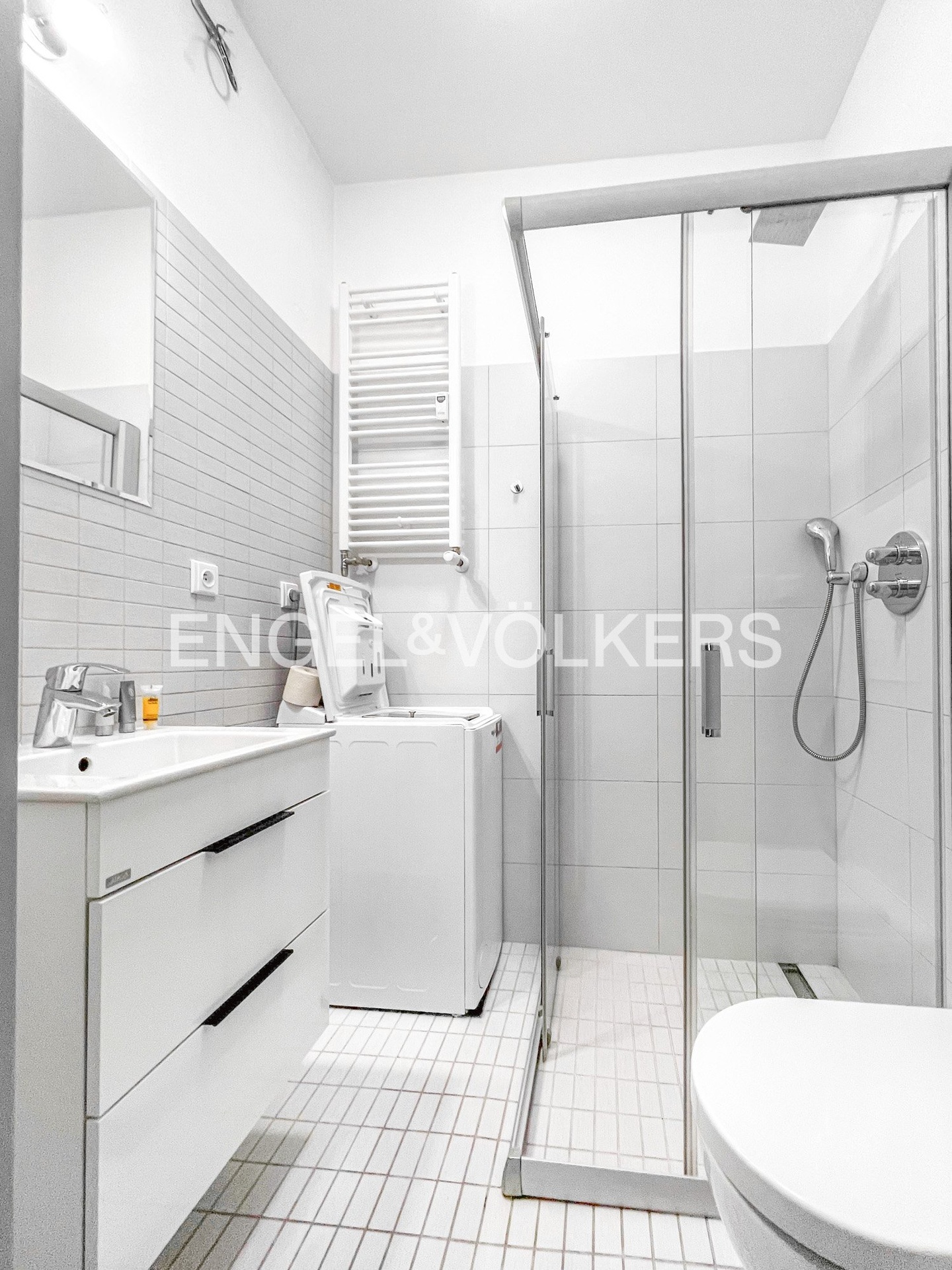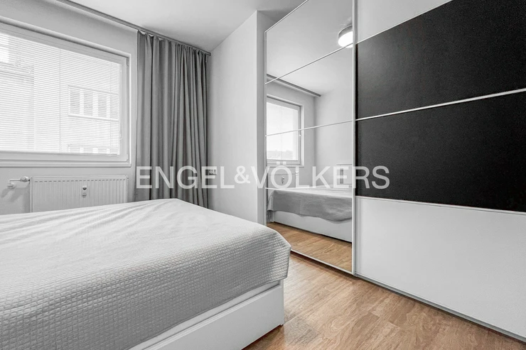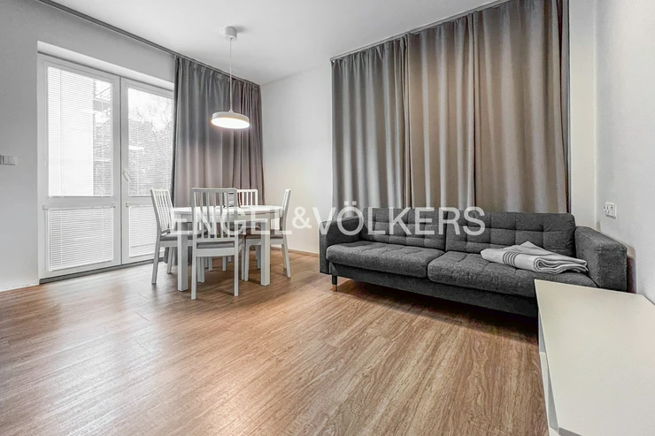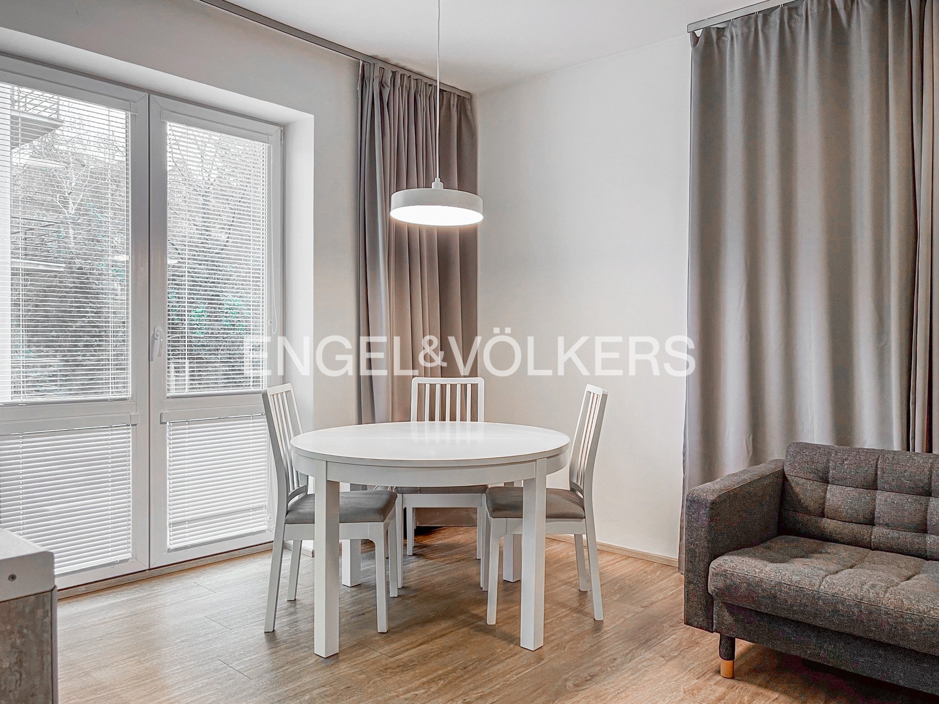 The apartment is located in an attractive part of Smíchov, just a few minutes from the Klamovka tram stop, which is only two stops away from the Anděl metro station and the Nový Smíchov center. In the vicinity, you will find restaurants, cafes, and shops; nearby are the Kinský Garden and Klamovka Park, ideal for walks and relaxation.