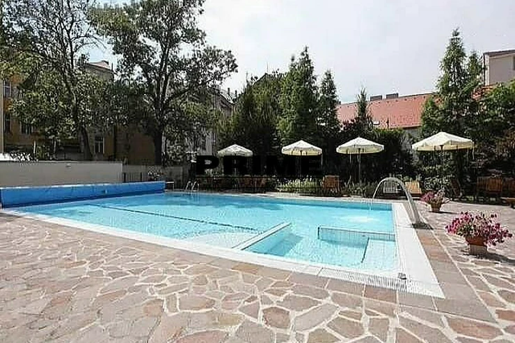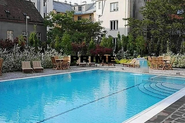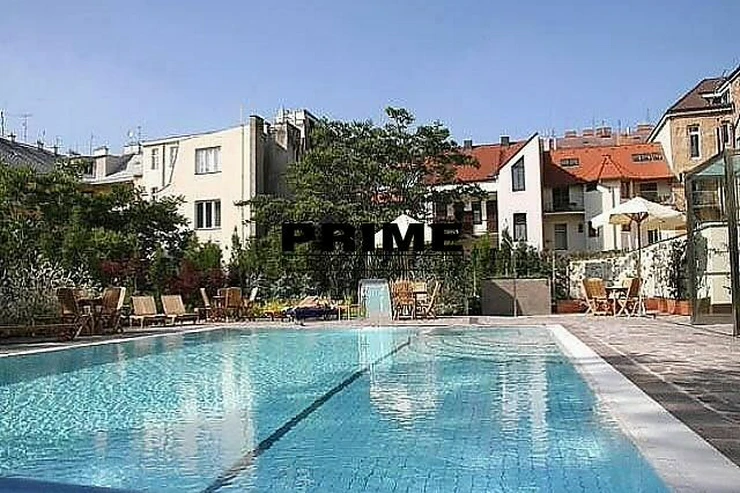 Wood parquet and tiled floors. Air conditioning, washing machine, TV set, internet connection (for EUR 50 + VAT/month), satellite connection, video entry phone. A shared garden with a heated outdoor swimming pool is available for tenants´ use. Garage parking is possible in the underground garages at an extra cost of 5,000 Kč + 21% VAT per space per month.