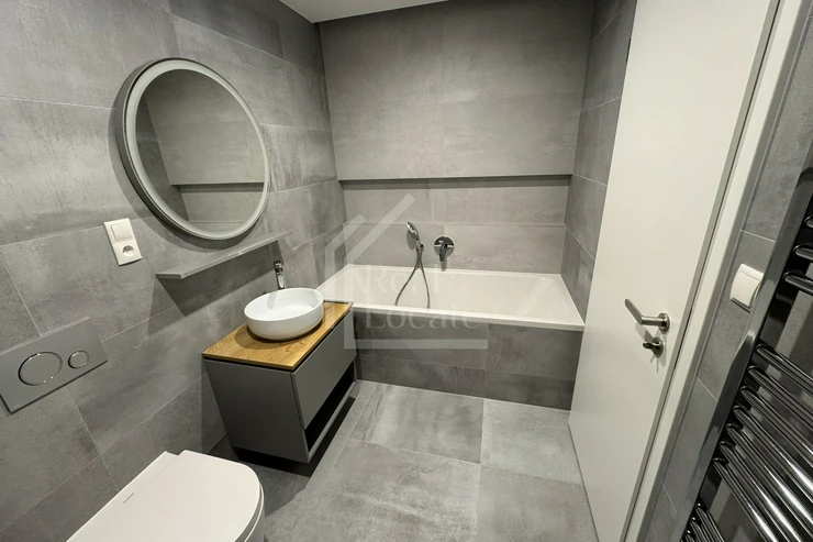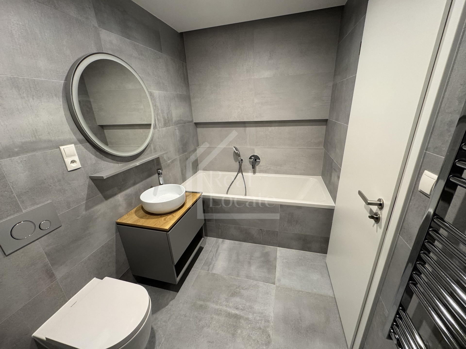 We are offering a modern 1-bedroom apartment (2+kk) for long-term rent, featuring a private garden, cellar and garage parking. The apartment is located in the prestigious Gamma Residence, part of the new Hagibor district, on the border of Vinohrady and Strašnice.