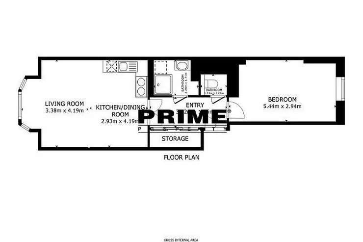 The property comprises: an entrance hallway, a living room with a bay window and an open, fully fitted kitchen with appliances (electric cooking hobs, oven, dishwasher, refrigerator and a microwave oven), a bedroom, a bathroom (with a shower cubicle and a sink), a small storage room and a separate toilet.