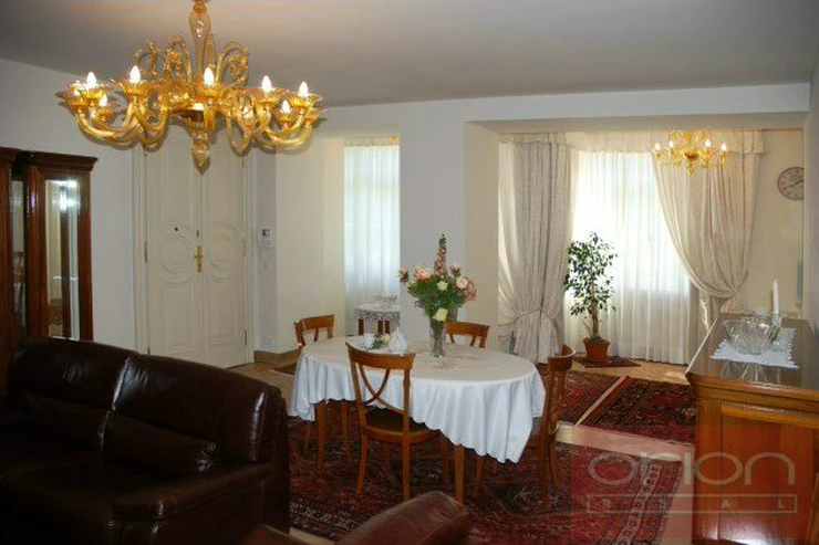 We offer for rent an exclusive, fully furnished two bedroom apartment with an area of 109 sqm, situated on the 1st floor of a renovated apartment building with an elevator, private garden, heated swimming pool and underground garages in the sought-after location of Prague 2 - Vinohrady. The layout of the apartment includes an entrance hall, a spacious living room with a fully equipped kitchen, two bedrooms, 2 bathrooms with a bathtub/shower, sink and toilet. The apartment is equipped with TV, satellite, air conditioning, videophone. The house is located in a very attractive and sought-after location of Prague's Vinohrady, with excellent civic amenities and excellent transport accessibility - metro stations and tram stops are just a few steps from the house, a bus stop is right in front of the house.