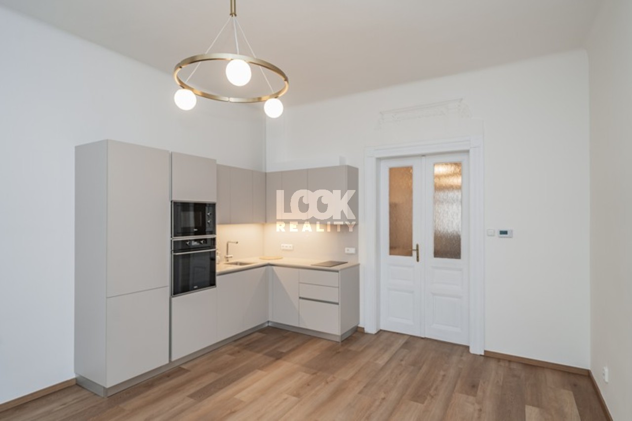 Exceptional apartment in the popular Vinohrady district of Prague. We offer for rent a beautiful 2+kk apartment, located on the 3rd floor of a historic building with an elevator on Slezska Street, Prague 2 - Vinohrady. The floor area is 57 m2. The apartment is rented unfurnished and consists of a spacious living room with a beautiful and fully equipped kitchenette (oven, glass hob, microwave, and refrigerator with freezer), bedroom, bright elegant bathroom with shower, separate toilet, hallway, and storage room. There is a washer and dryer in the bathroom. Heating is provided by a gas boiler. The apartment is airy and pleasant thanks to its high ceilings and large windows. The apartment is located in a sought-after location near Jiriho z Podebrad Square. There are a number of parks in the area, such as the popular Riegrovy sady, an ideal place for a walk, sports, or spending time with friends. All civic amenities are nearby, including many cafes, restaurants, banks, and shops. Another advantage is the proximity of the Olsanka Hotel with a sauna and swimming pool. The Atrium Flora shopping center with a multiplex cinema is also just a few minutes away. Excellent transport accessibility. A few minutes' walk away is the Jiriho z Podebrad metro station (line A) and tram stop. The Perunova tram and bus stop (tram 10, 16, 11; bus 101) is a 2-minute walk away. Beautiful living in a popular location. We recommend it.