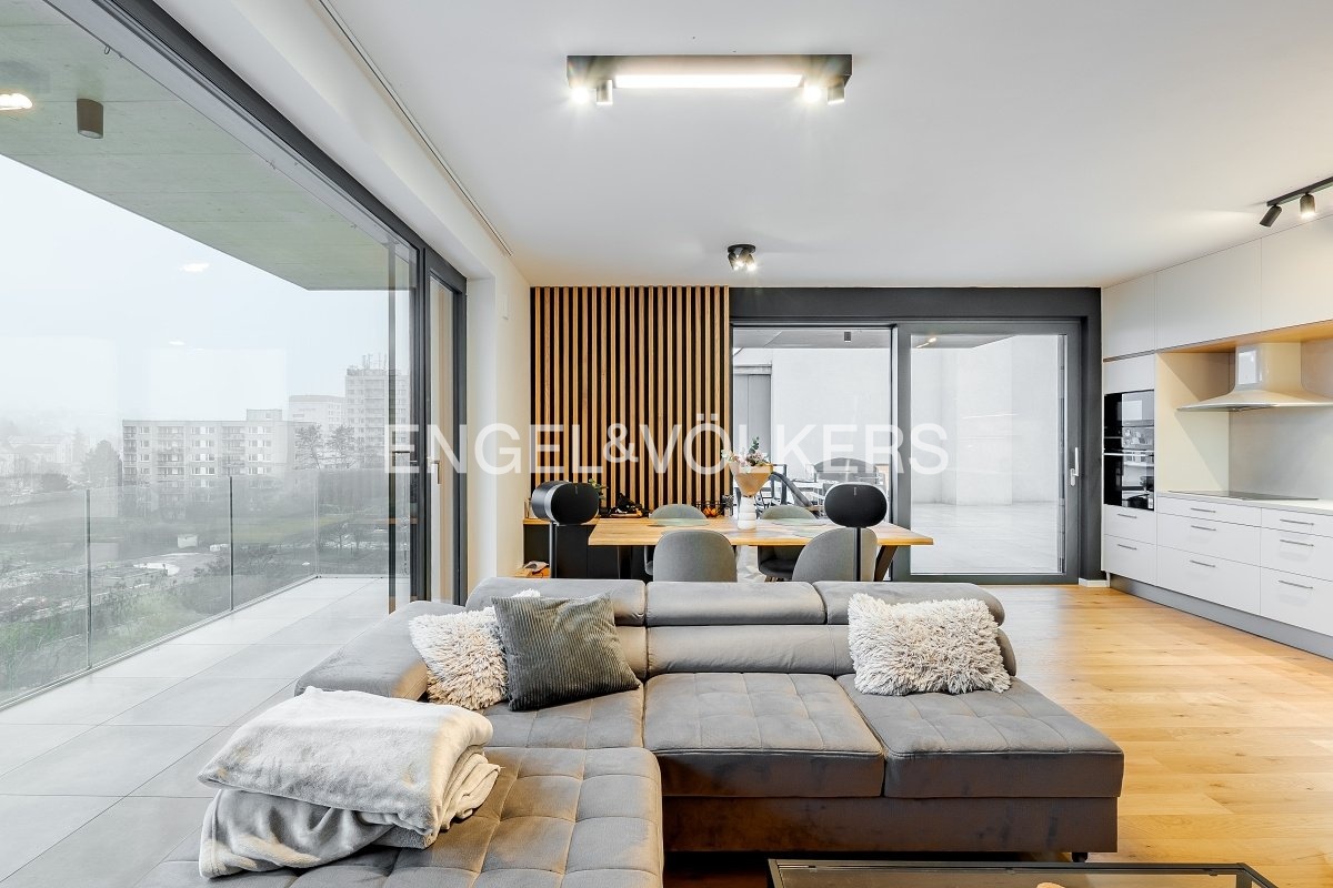 We are offering a brand new 3+kt apartment with a usable area of 92.62 m² for rent, located on the top floor of the modern U Lesoparku development project.
