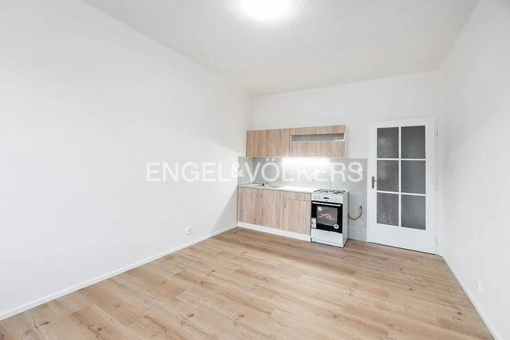 The 2+kt apartment is located on the fourth above-ground floor of a brick apartment building. The apartment has undergone a current and complete reconstruction and consists of an entrance hall, a separate bedroom with a utility room, oriented towards the courtyard, a living room with a kitchen without a refrigerator, and a bathroom with a bathtub. Last but not least, there is a separate toilet in the apartment. A great advantage is good transport accessibility; the tram stop is located directly in front of the house. The building does not have an elevator. The apartment is available for immediate rent.