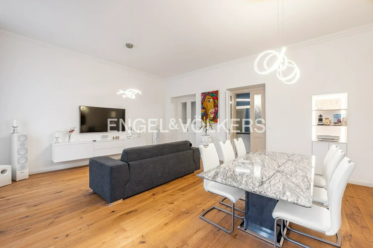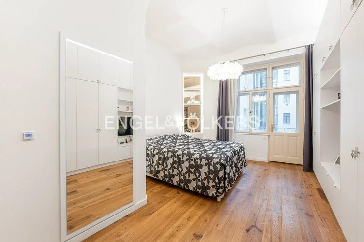 We offer for rent an elegant and fully equipped 2+1 apartment with a total usable area of 84.22 sqm, located on the 1st above-ground floor of a building at Dienzenhoferovy sady, just a few steps from the Vltava River and the popular Janáčkovo Embankment.