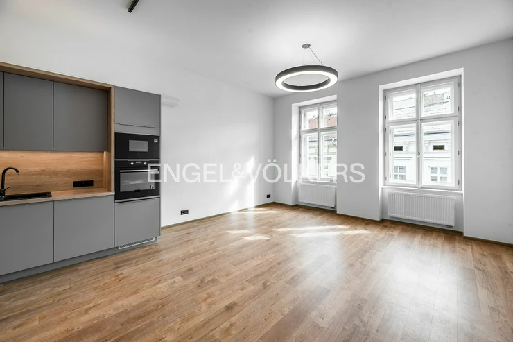 Available is an exclusive apartment 1+kk, located on the 3rd floor of a completely renovated house with elevator near Petřín and OC Smíchov.