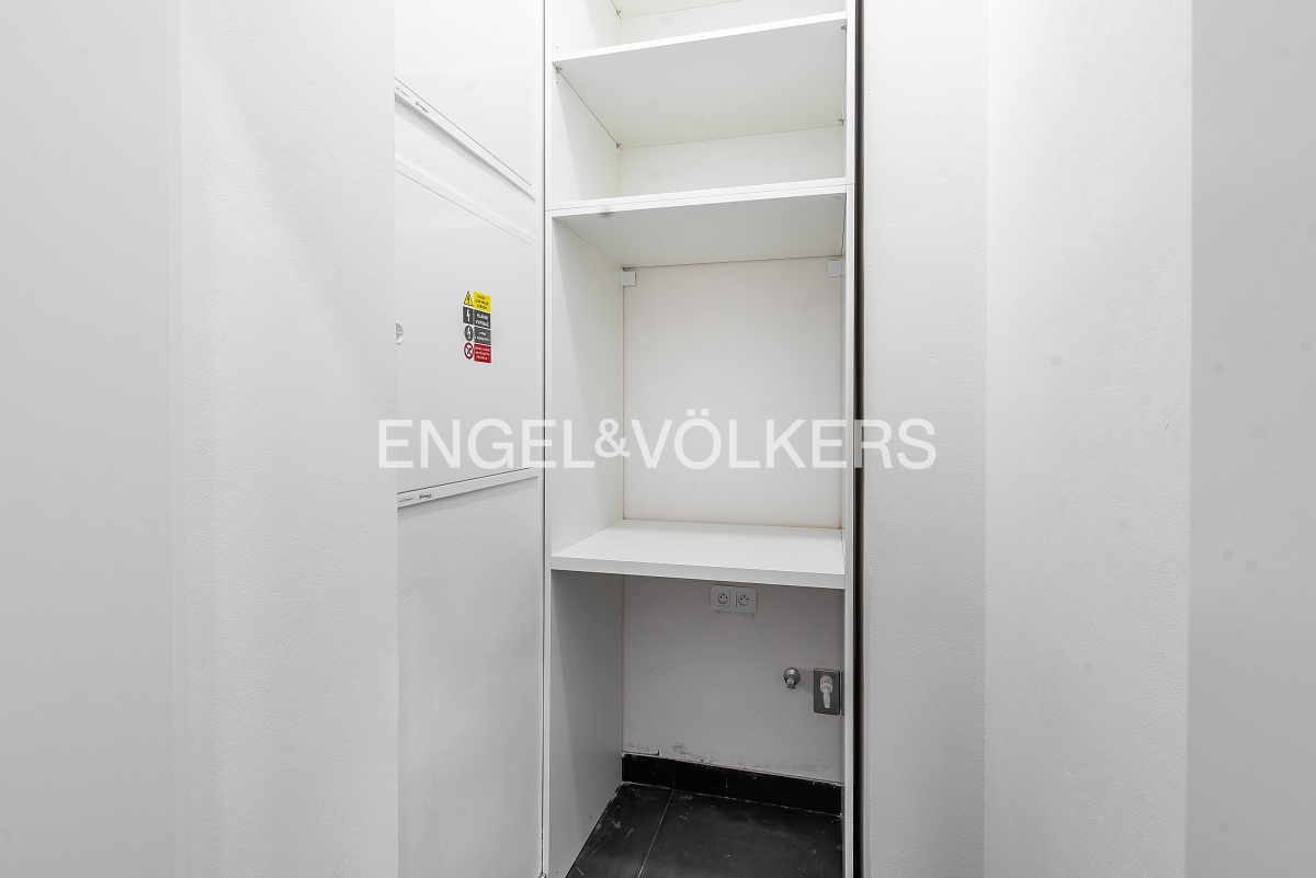 The rental includes a washing machine and the apartment has a cellar. There is a shared carriage room with a shower room for washing bikes.