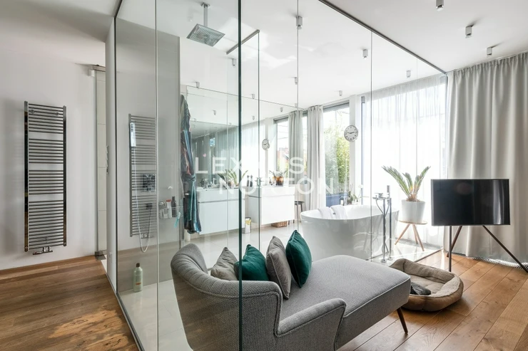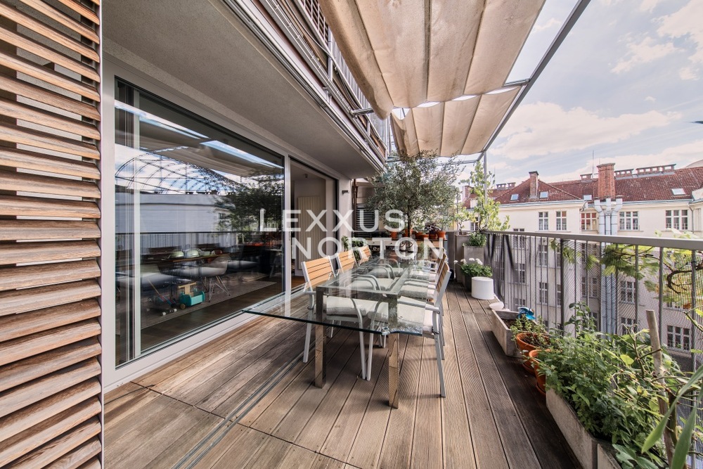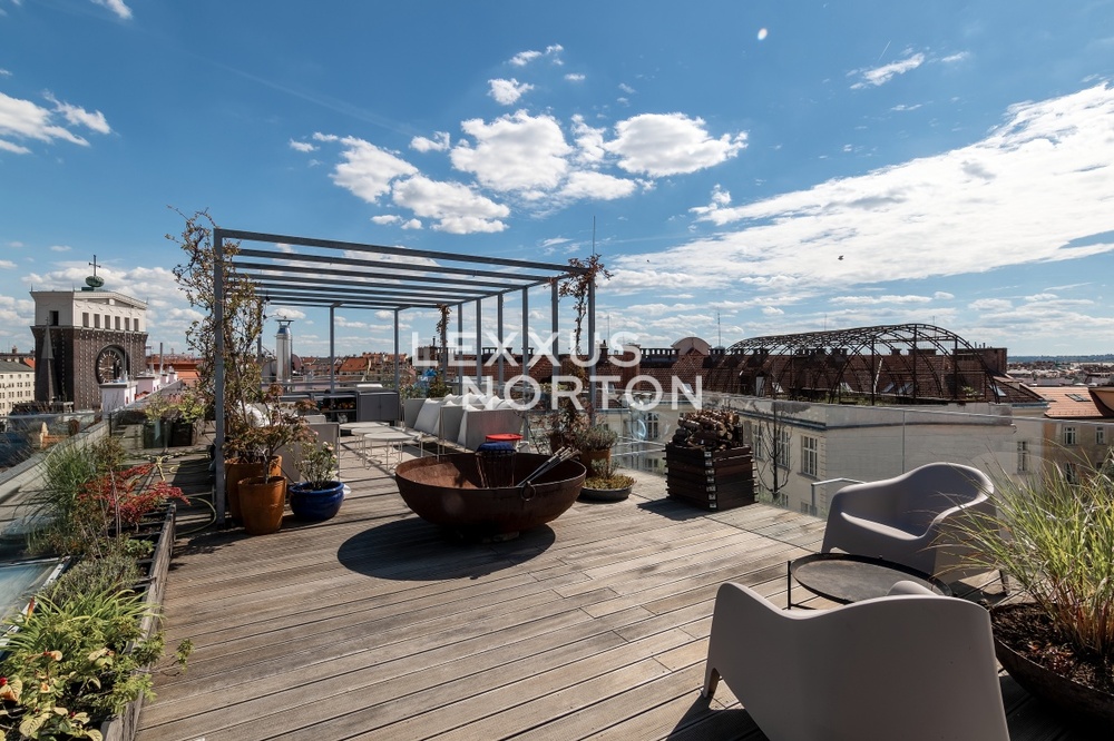 We offer for rent an unfurnished 3-bedroom duplex apartment with an area of 260.5 sqm with air conditioning and three terraces with a total area of 193.5 sqm, located on the 6th floor of Residence Laubova with an elevator. The property is located in the beautiful area of Prague 3 - Vinohrady, with all amenities and good transport infrastructure.The apartment has an entrance hall, living room with kitchenette and access to the terrace. On the upper floor there are 3 bedrooms, 2 bathrooms, separate toilet, spacious dressing room and access to the roof terrace. Possibility to rent two garage parking spaces. The interior was designed by the renowned architectural studio Design by Donlic.The dominant feature of the apartment is a spacious living room with an area of 101 sqm with a unique suspended fireplace and a luxury kitchen equipped with built-in Miele appliances – a refrigerator with a freezer, a hob, an oven, a microwave oven, and a dishwasher. The bathrooms are equipped with a bathtub, walk-in shower, and two sinks, there is also a bidet next to the separate toilet. The apartment's above-standard amenities also include a washing machine and dryer, built-in wardrobes, high-quality wooden floors, a security entrance door, an alarm with the option of connecting to a security center, and a videophone.The property is located in the heart of Vinohrady, one of the most desirable locations in Prague. It has a great position where everything you need can be found within a 10-minute walk. The area has excellent transport accessibility - 3 metro stations - Jiriho z Podebrad, Flora and Zelivskeho, trams and buses, meaning you can get to Wenceslas Square in just 7 minutes. The road links are also good. The motorway ring road can be reached in just 14 minutes and Vaclav Havel Airport in 30 minutes by car. There are complete civic amenities nearby - a pharmacy, hospital, post office, Atrium Flora shopping centre, supermarkets, offices, banks, local shops, restaurants, cafés and bars. There are kindergartens, as well as primary and secondary schools nearby. There are several parks within walking distance - Havlickovy, Bezrucovy, Mahlerovy and Riegery sady - as well as children’s playgrounds.The inquiring client agrees to pay a commission of 1 month's rent plus VAT.If you are unable to view the property in person, we also offer a video tour from the comfort of your home in real time via Messenger, WhatsApp, and other communication platforms.