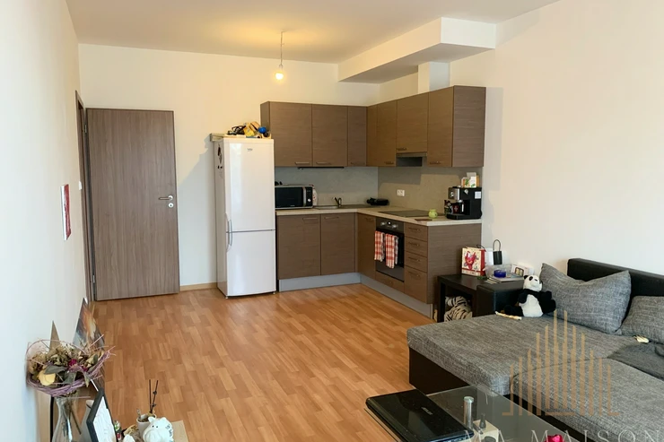 The apartment is offered unfurnished. It is divided into an entrance hall, bedroom, bathroom with toilet, spacious living room with kitchen, which is equipped with a refrigerator, hob and extractor hood. The living room has an entrance to the balcony, which offers a view of the courtyard and partly of the street. The apartment includes a storage room. If interested, it is possible to buy the furniture from the current tenants - price negotiable.