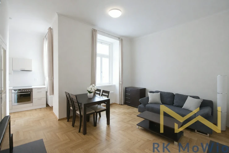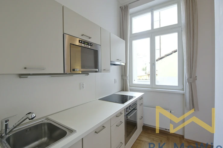 We offer for rent a fully renovated, furnished 2-bedroom apartment (2+kk) with a total area of 50 sqm, located on the ground floor (1st above-ground level) of a building with an elevator, in Vratislavova Street in the charming area of Prague 2 – Vyšehrad.