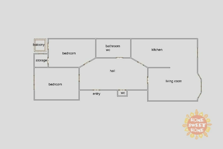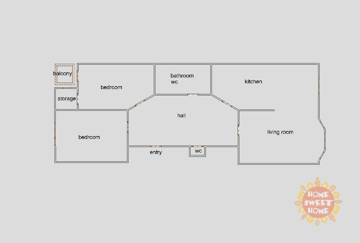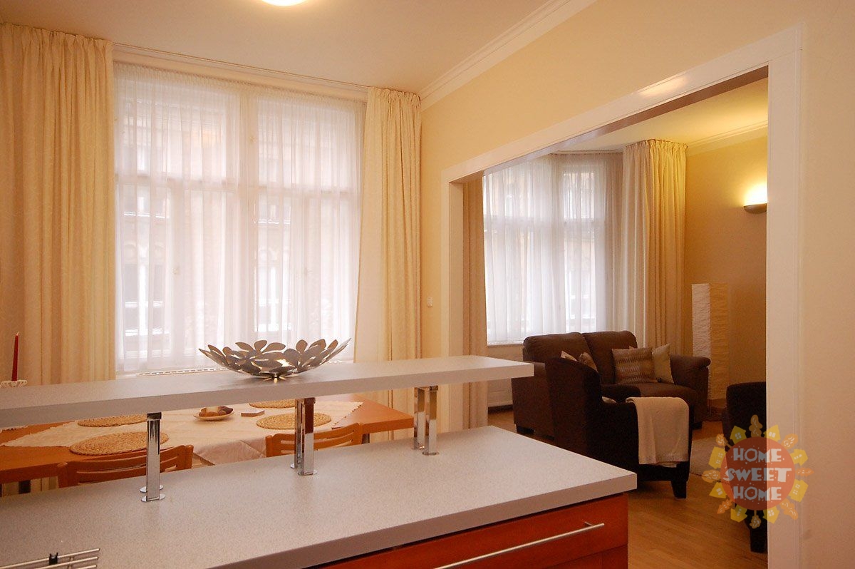 a specious entrance hall, living room connected to the kitchen and dining area (kitchen, equipped with appliances - ceramic hob, dishwasher, microwave, fridge with freezer, washing machine) two separate bedrooms facing the courtyard (one bedroom has a closet and access to the balcony), bathroom with massage bath and toilet, another toilet separately. There are wooden parquets and tiles on the floor.