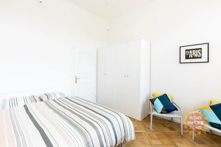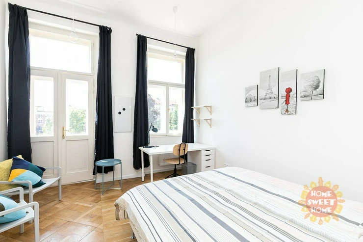 Beautiful furnished room with balcony and a total area of 14,76 square meters with a shared kitchen, dinning area, bathroom with shower and toilet is located in the Residence Kinských on 2nd floor of a brick house in the street nam.Kinských, Prague 5.he house was completely renovated in 2019. The room is fully furnished. Also the apartment is fully equipped including a mop, vacuum cleaner and iron with a board.Cleaning of common areas is already included in the rent once a week. Furthermore, there is also a completely free fitness room, laundry room (for coins) and a common backyard.
