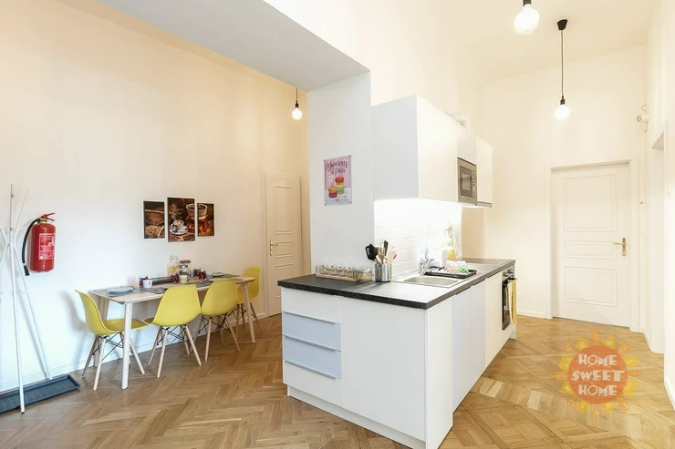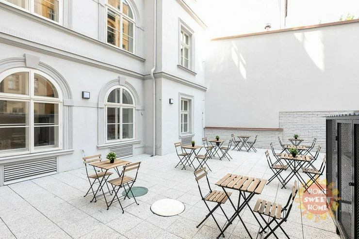 The residence is located in a popular location right in the city center and close to the garden "Kinsky" and park "Petrin". Excellent amenities: shopping center Andel, Cinema City Novy Smichov, schools, restaurants, bars and much more. Excellent transport links: 200sqm to tram. stop "Újezd", 10min walk to metro station Anděl or five tram stops. to the train station ,, Praha - Smíchov ".