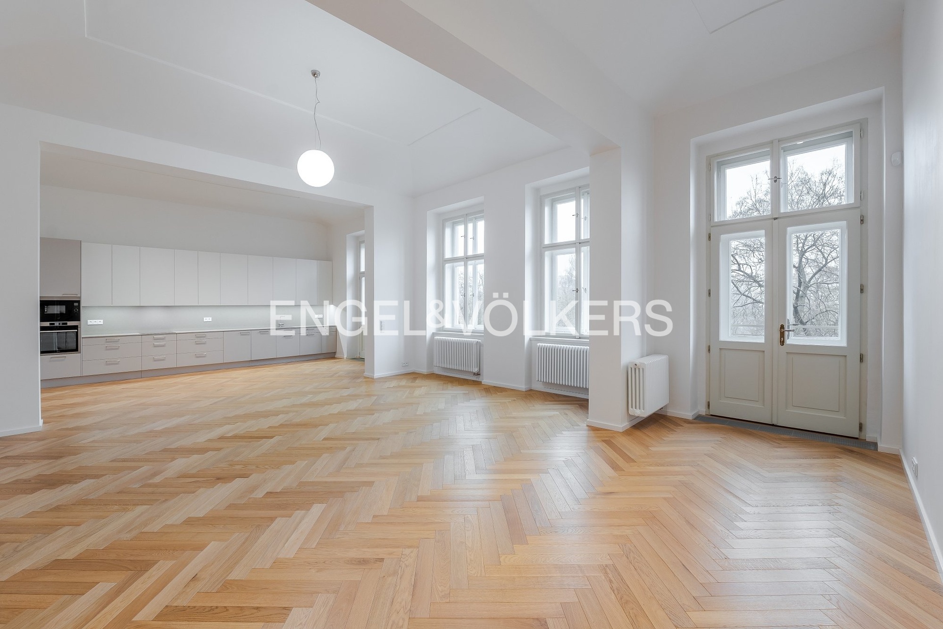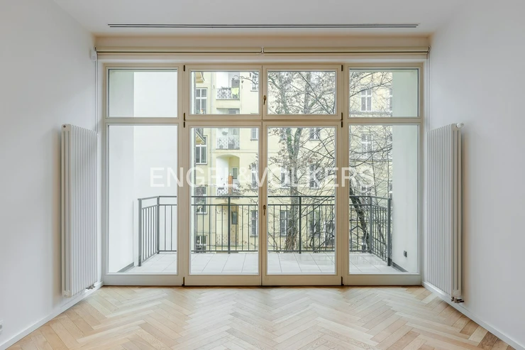 We offer for rent a premium riverside apartment with a 3+kt layout, situated on the 1st floor of a meticulously renovated historical residential building equipped with an elevator, 24/7 security, a camera system, and a sauna. The building is located in an attractive area right on the Vltava embankment, in a tree-lined street within walking distance of Kampa, Petřín Gardens, Malá Strana, and the Old Town.