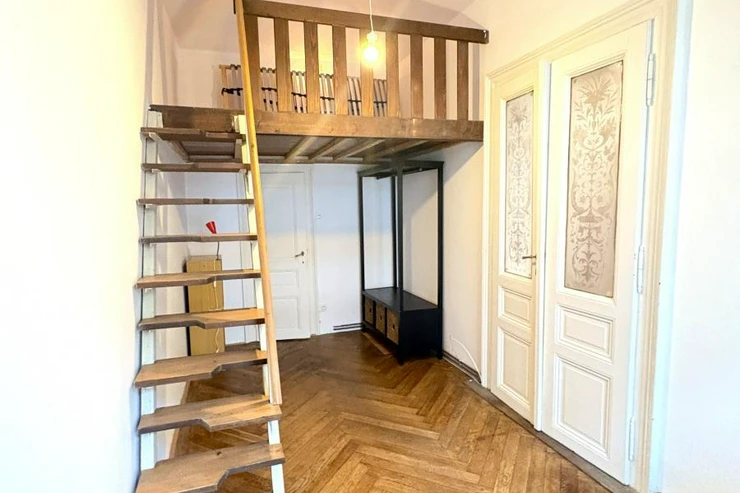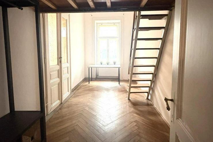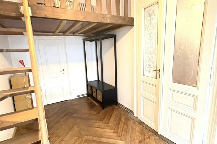 The interior features original wooden floors that enhance the character and pleasant atmosphere of the apartment.