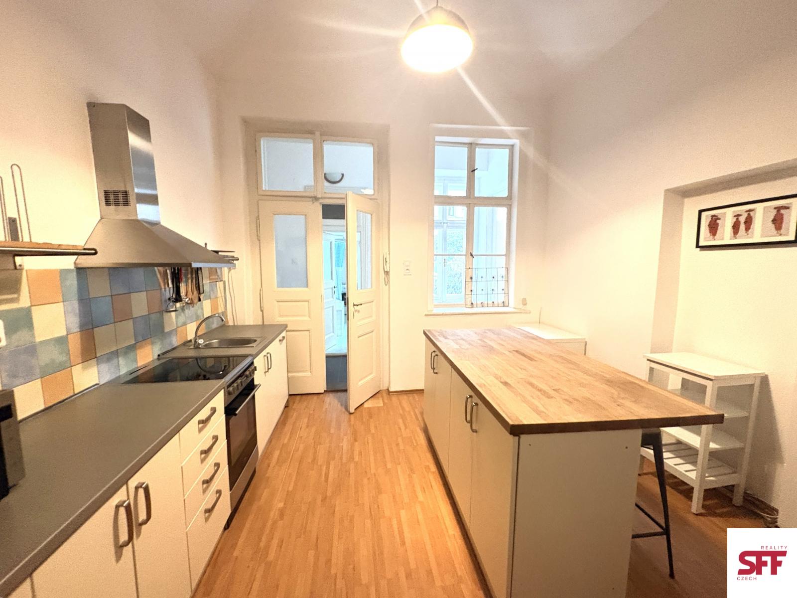We offer for long-term rent a bright, freshly painted and partially furnished 3+1 apartment with a total area of 74 sqm, located on the elevated ground floor of a residential building in the attractive area of Prague 2 Vinohrady, Bělehradská Street.