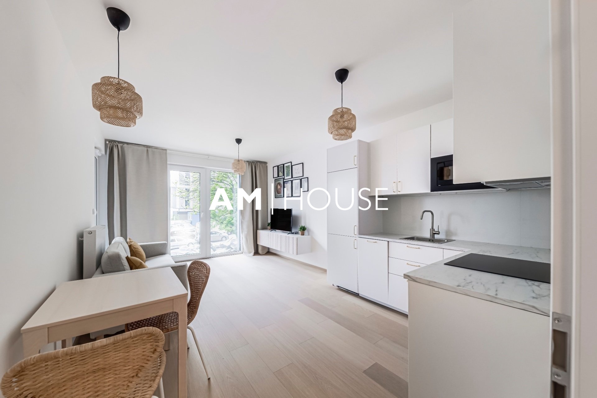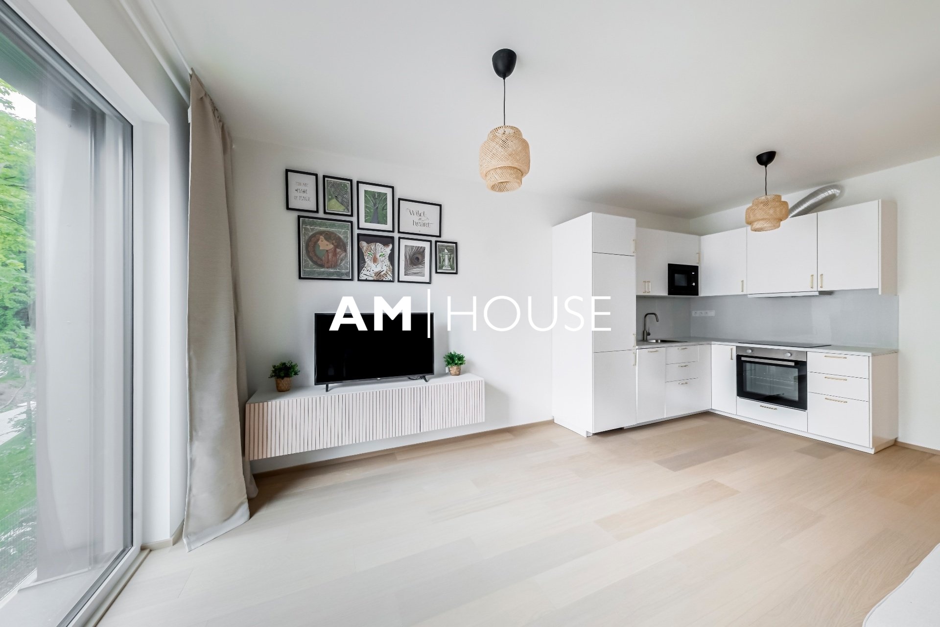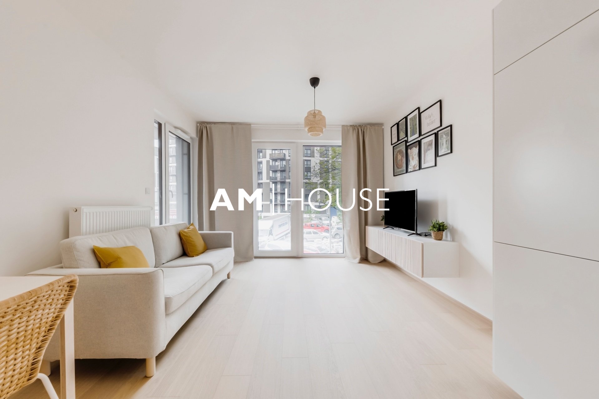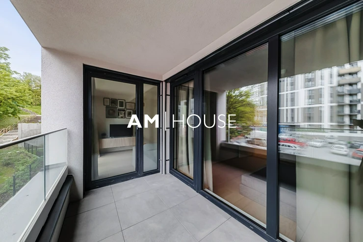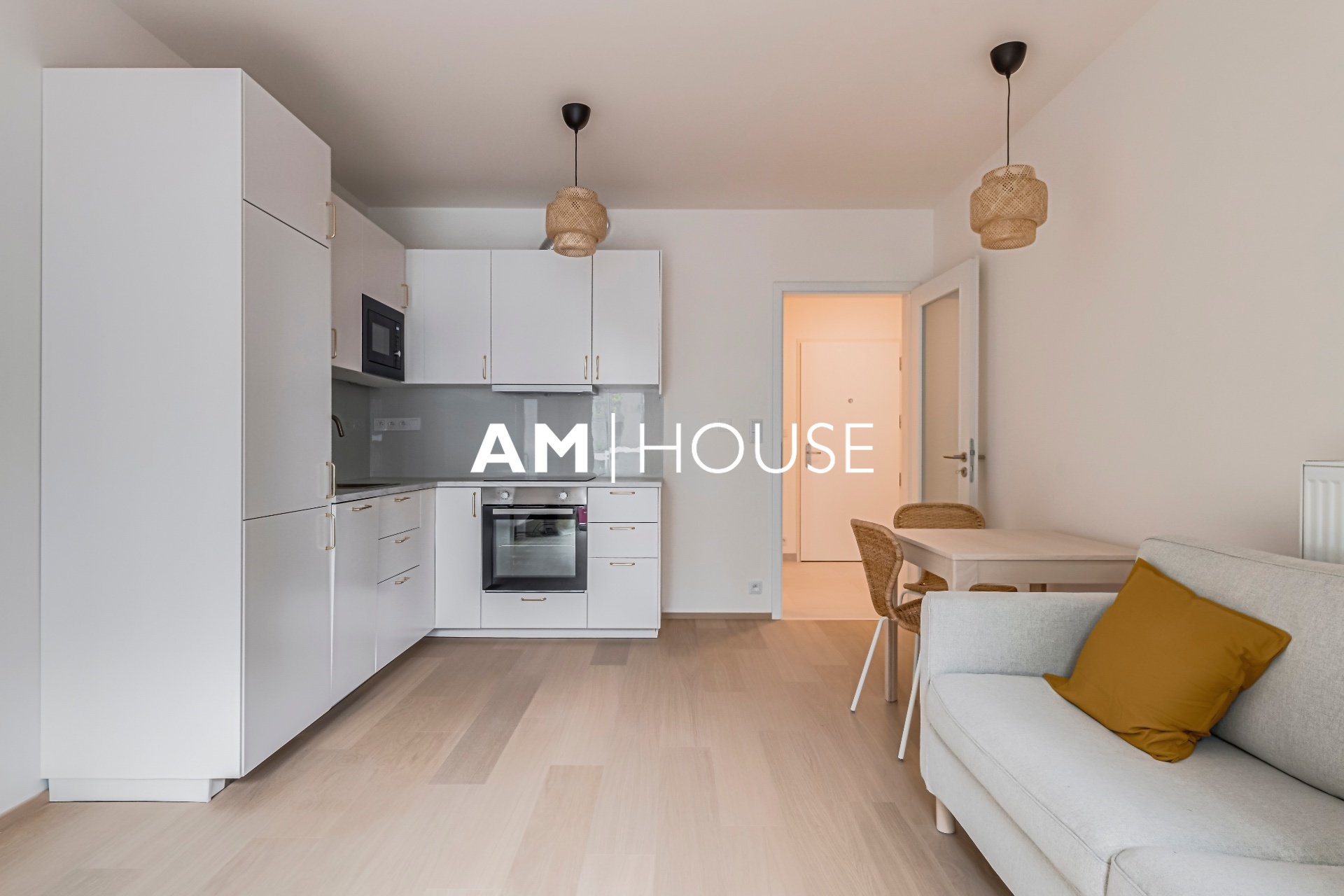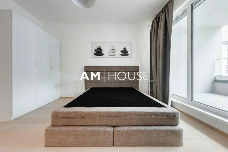 Společnost „Am House“ nabízí dlouhodobému pronájmu moderní, plně zařízený byt 2+kk o podlahové ploše 60 m² ve 5. NP novostavby.