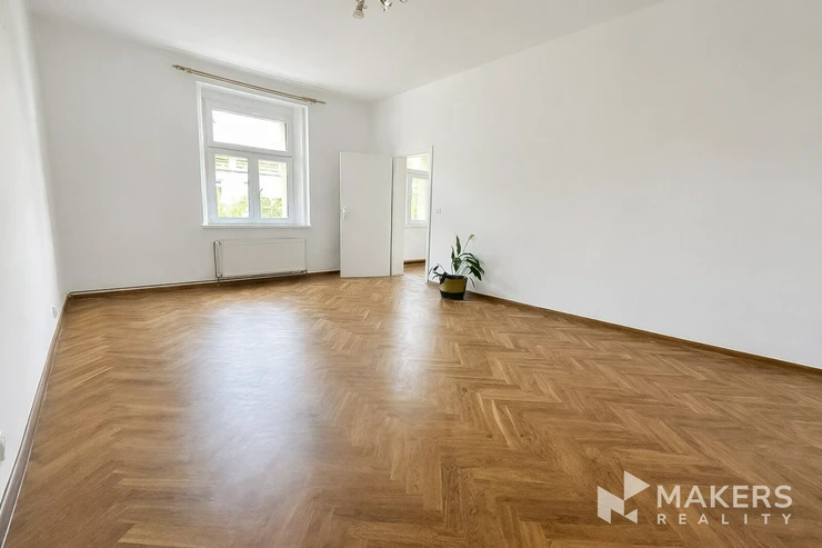 We are offering for rent a modern and very spacious apartment with a 2+kk layout and a total area of 80 m². The apartment is located on the 2nd floor of a brick building without an elevator, in a quiet part of Žižkov, on U Kněžské louky Street. The unit has undergone a complete renovation and is ready for immediate move-in.