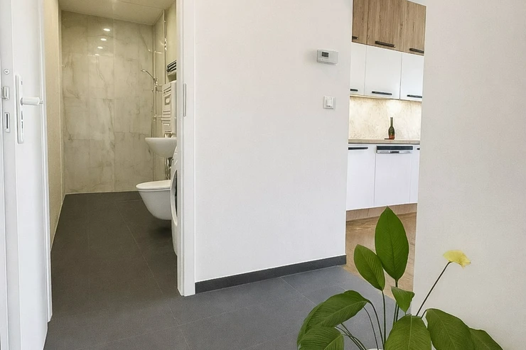 The apartment is situated in a sought-after area of Prague 3 – Žižkov, known for its well-developed infrastructure and peaceful residential atmosphere with plenty of green spaces. Directly across the street is a Kaufland supermarket, and within walking distance you will find shops, cafés, restaurants, a pharmacy, a school, and a post office.