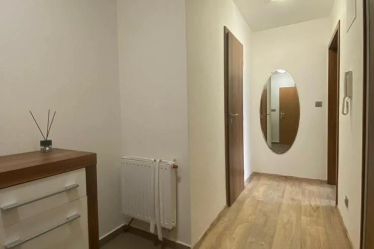 Kuchyně je vybavena kuchyňskou linkou včetně spotřebičů. V ložnici se nachází velká vestavěná skříň s dostatkem úložného prostoru.
