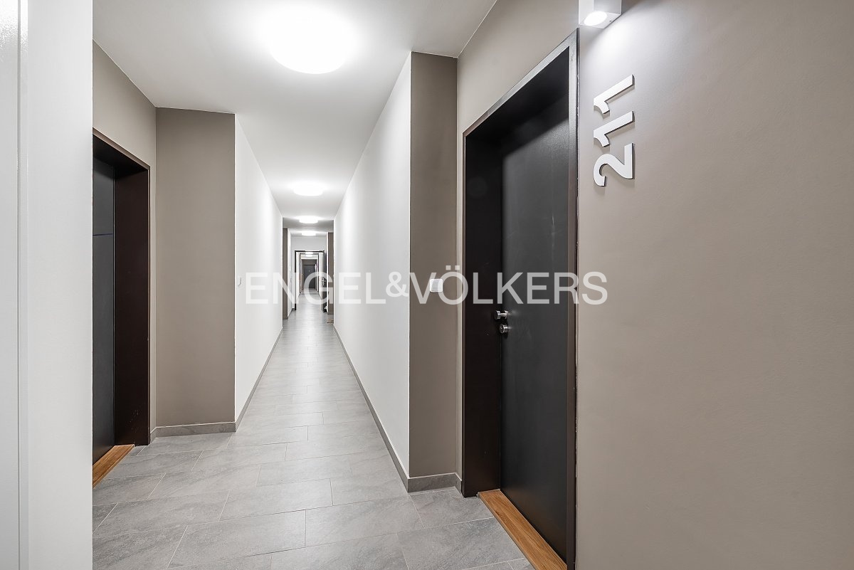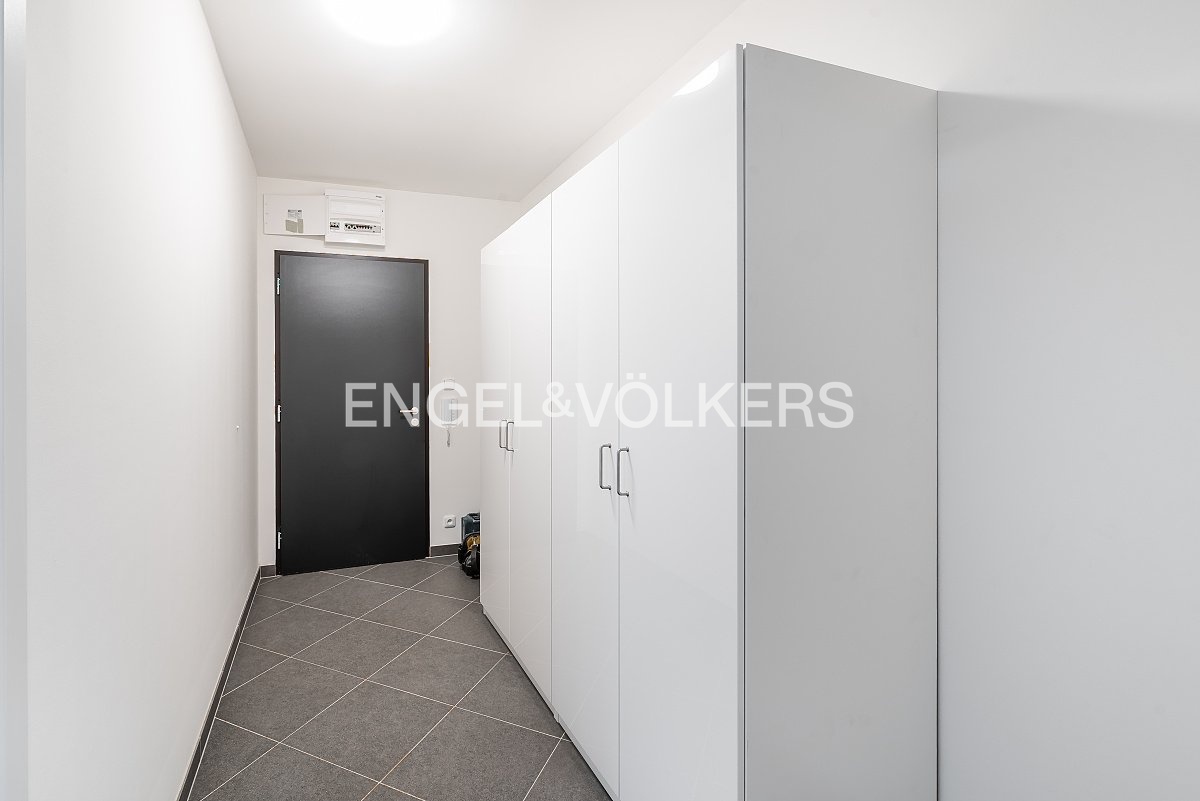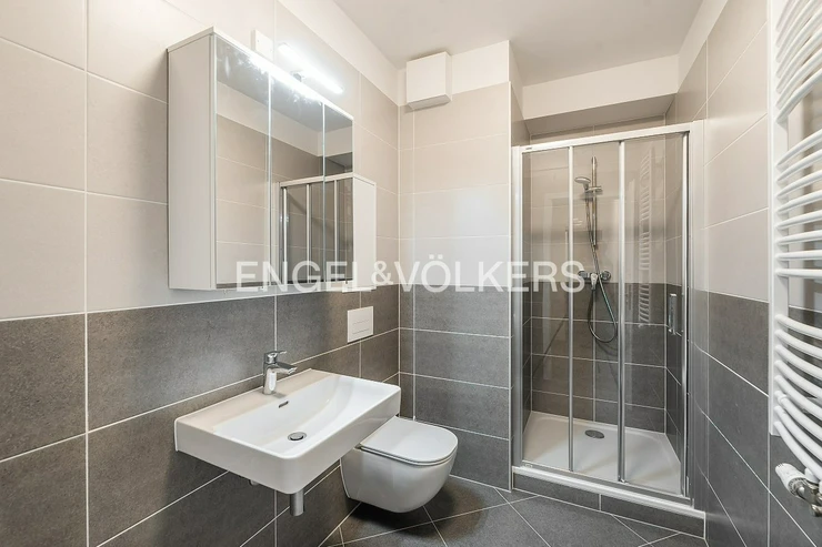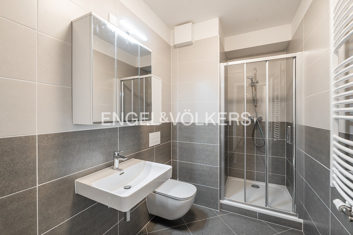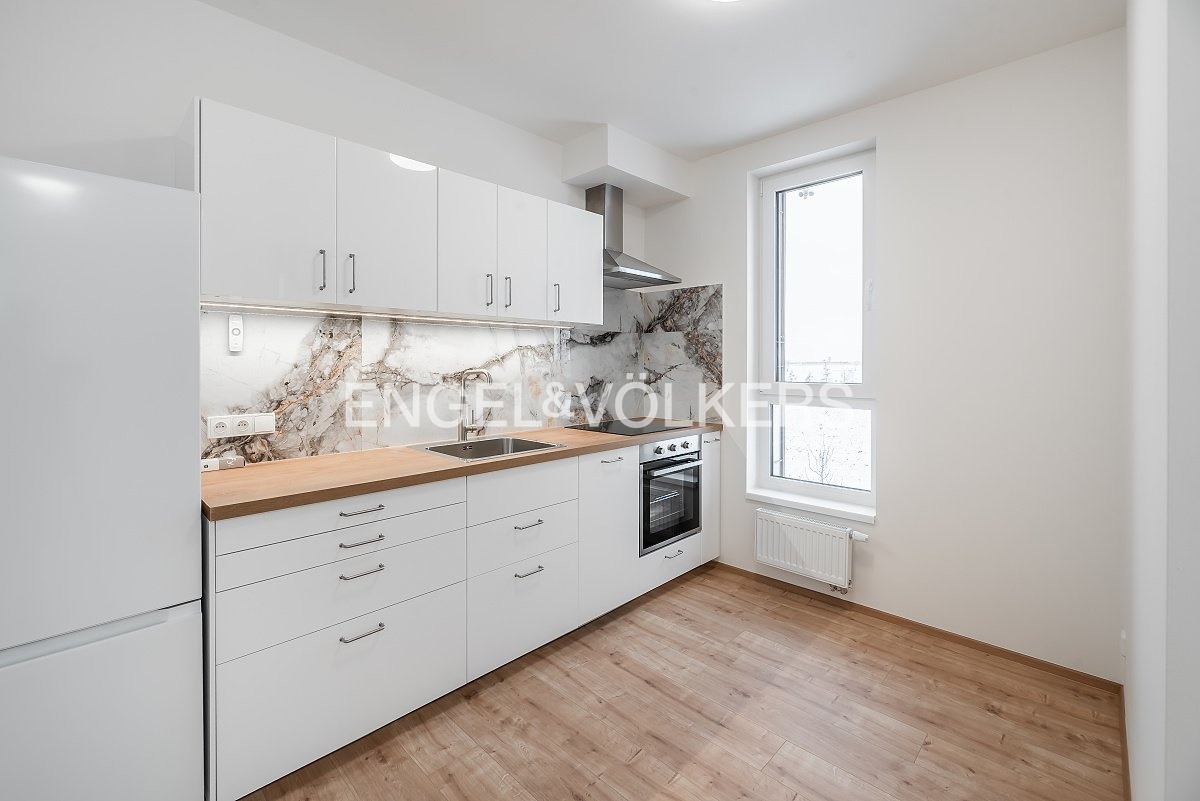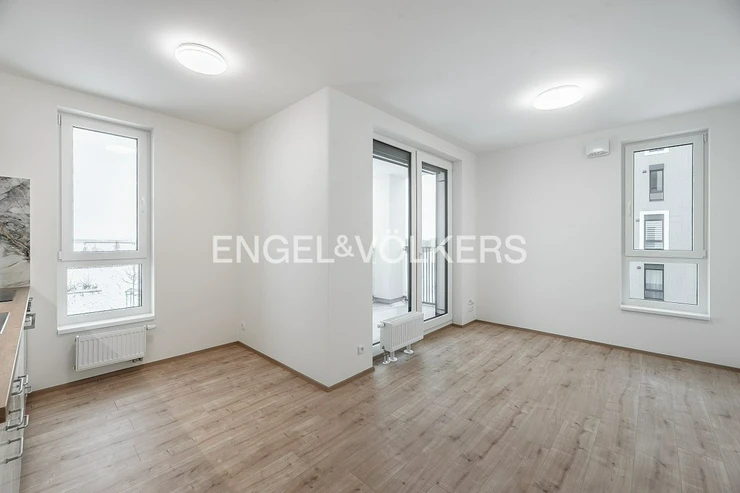 A brand-new studio apartment with a floor plan of 1+kt and an area of 32 m² with a spacious loggia of 5 m² is available for rent. It is located in a modern new building on Stočesova Street. The apartment is part of a completely new residence and has not yet been occupied. The living area is connected to the kitchenette, and there is also a bathroom with a shower and toilet.
